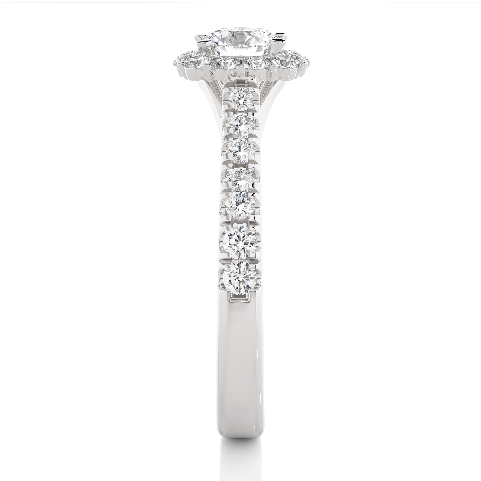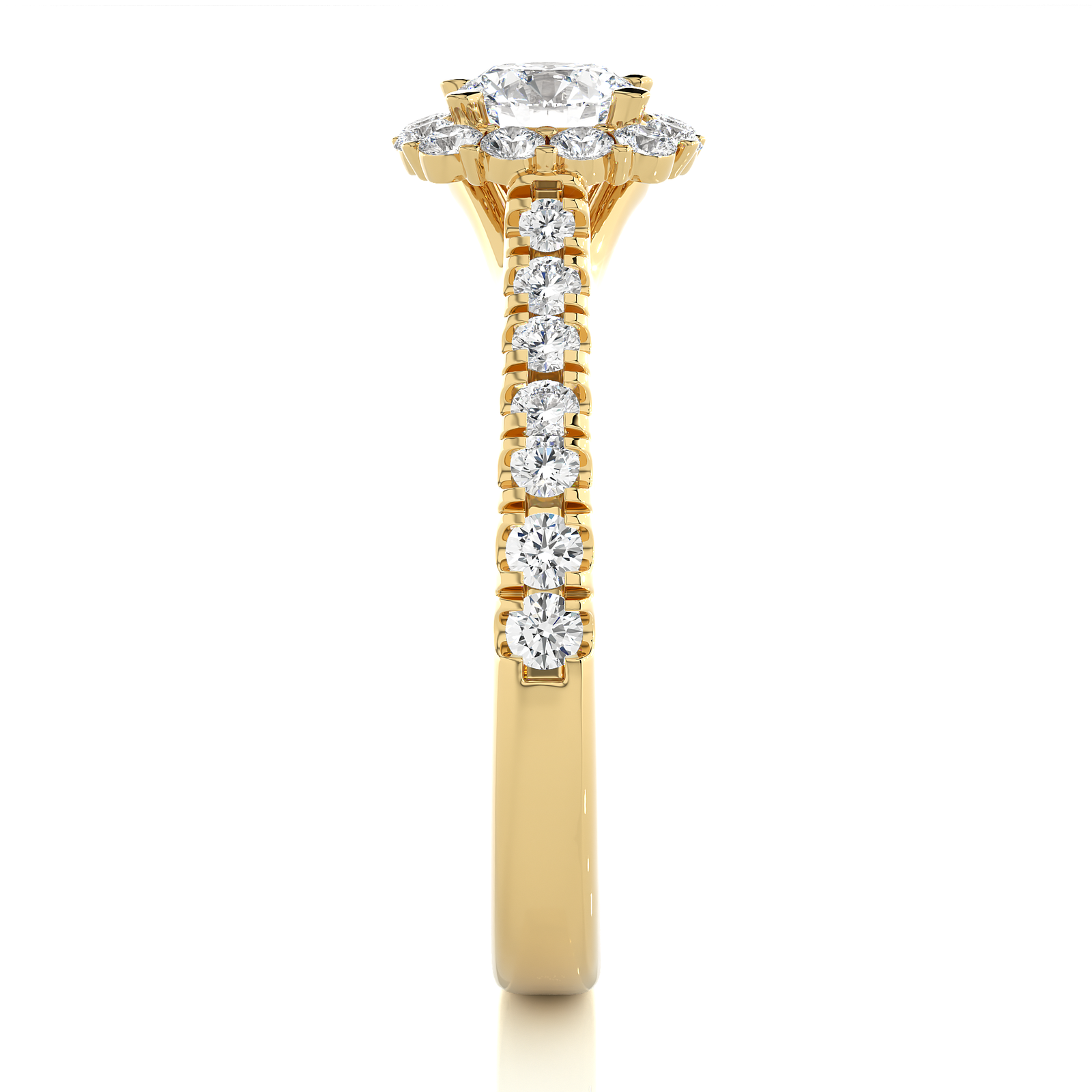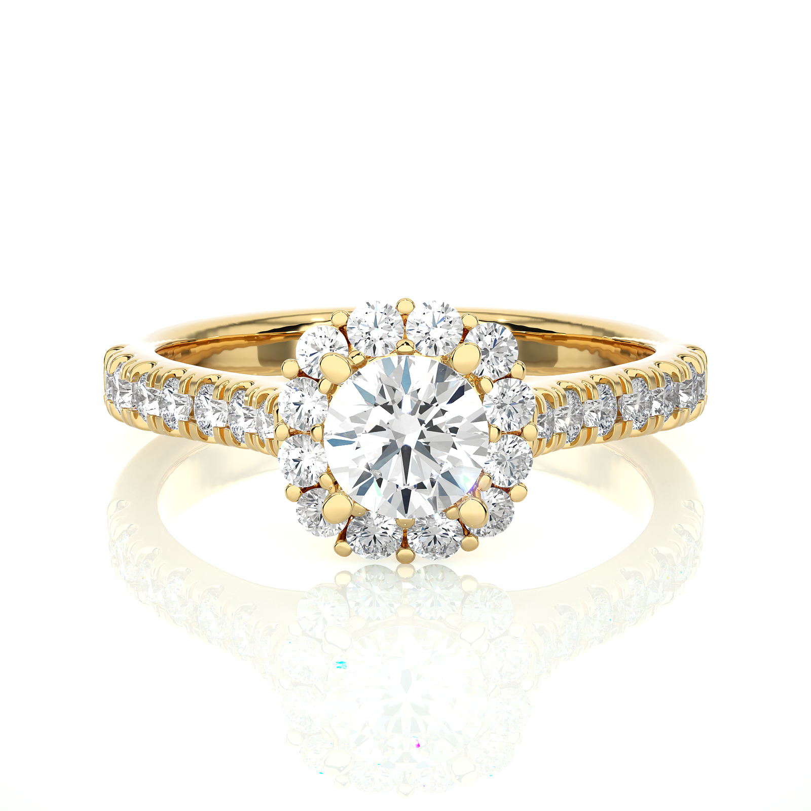 Elegance meets brilliance in this classic gold engagement ring. A dazzling round-cut center diamond is beautifully framed by a halo of sparkling diamonds, with additional diamonds adorning the band for added glamour. Timeless and radiant, this ring is a perfect symbol of love and commitment, designed to shine forever.
