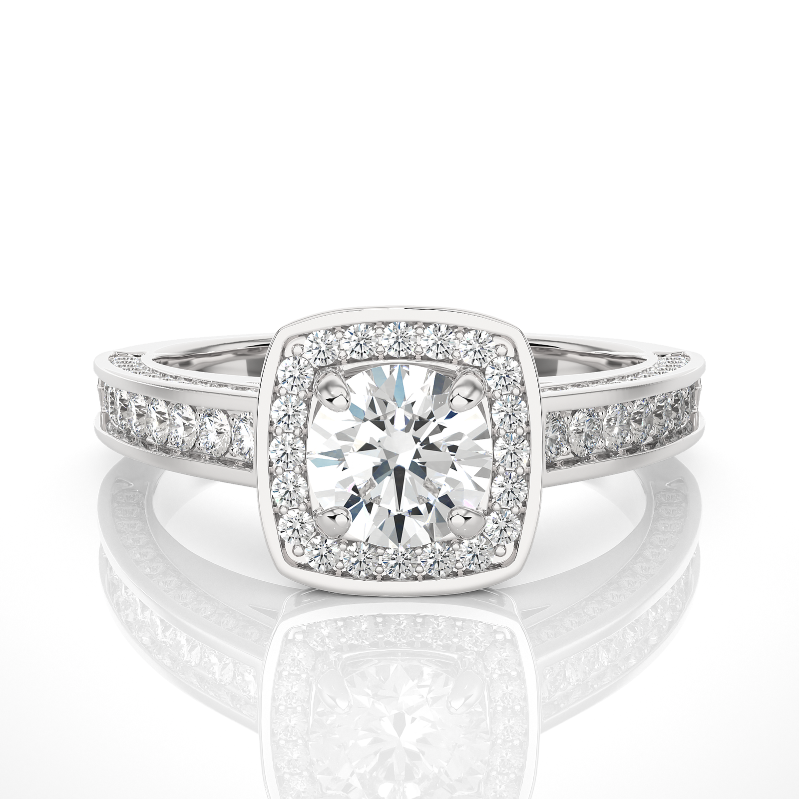 This elegant solid gold engagement ring showcases a cathedral-style setting with delicate milgrain and filigree detailing beneath the center stone. Pavé diamonds accent the band and gallery, adding sparkle from every angle. A timeless yet artistic design, perfect for those who appreciate sophistication and exquisite craftsmanship in their jewelry.