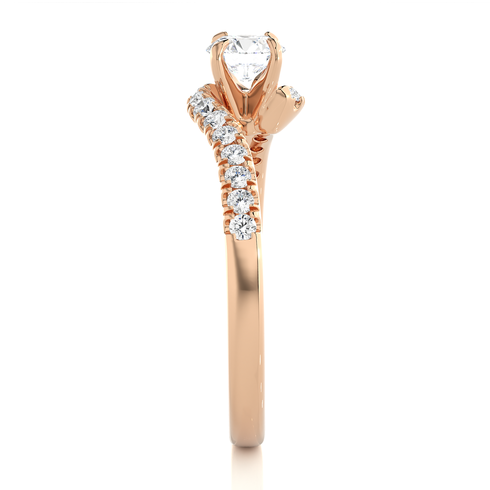This twisted solitaire engagement ring. Crafted in radiant yellow gold, the split shank design gracefully wraps around a brilliant round-cut center diamond. Accented with sparkling diamonds along the band, this unique setting symbolizes two lives intertwining—perfect for a love story that’s one of a kind.
