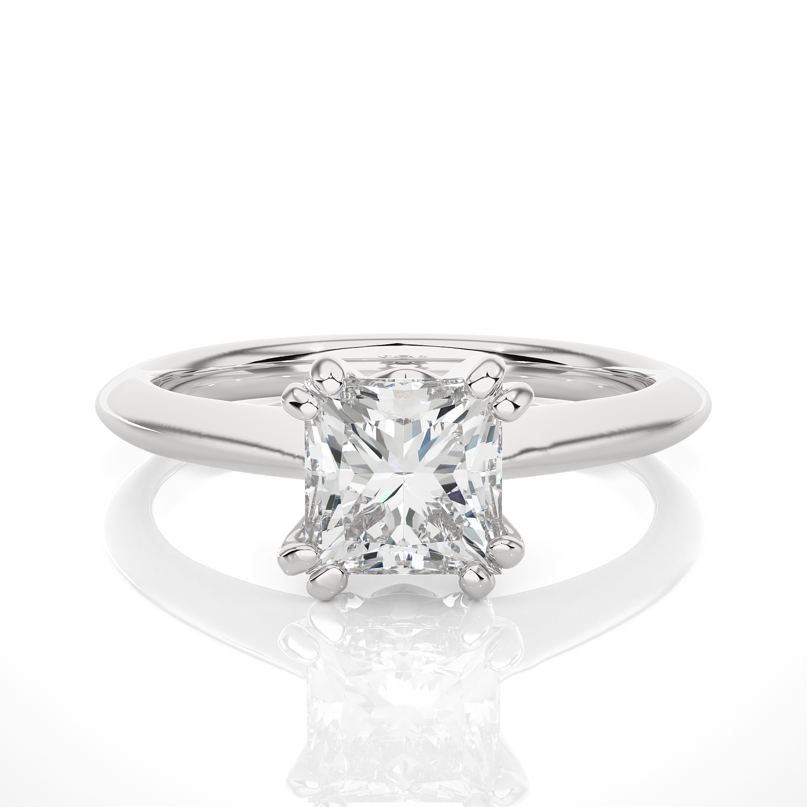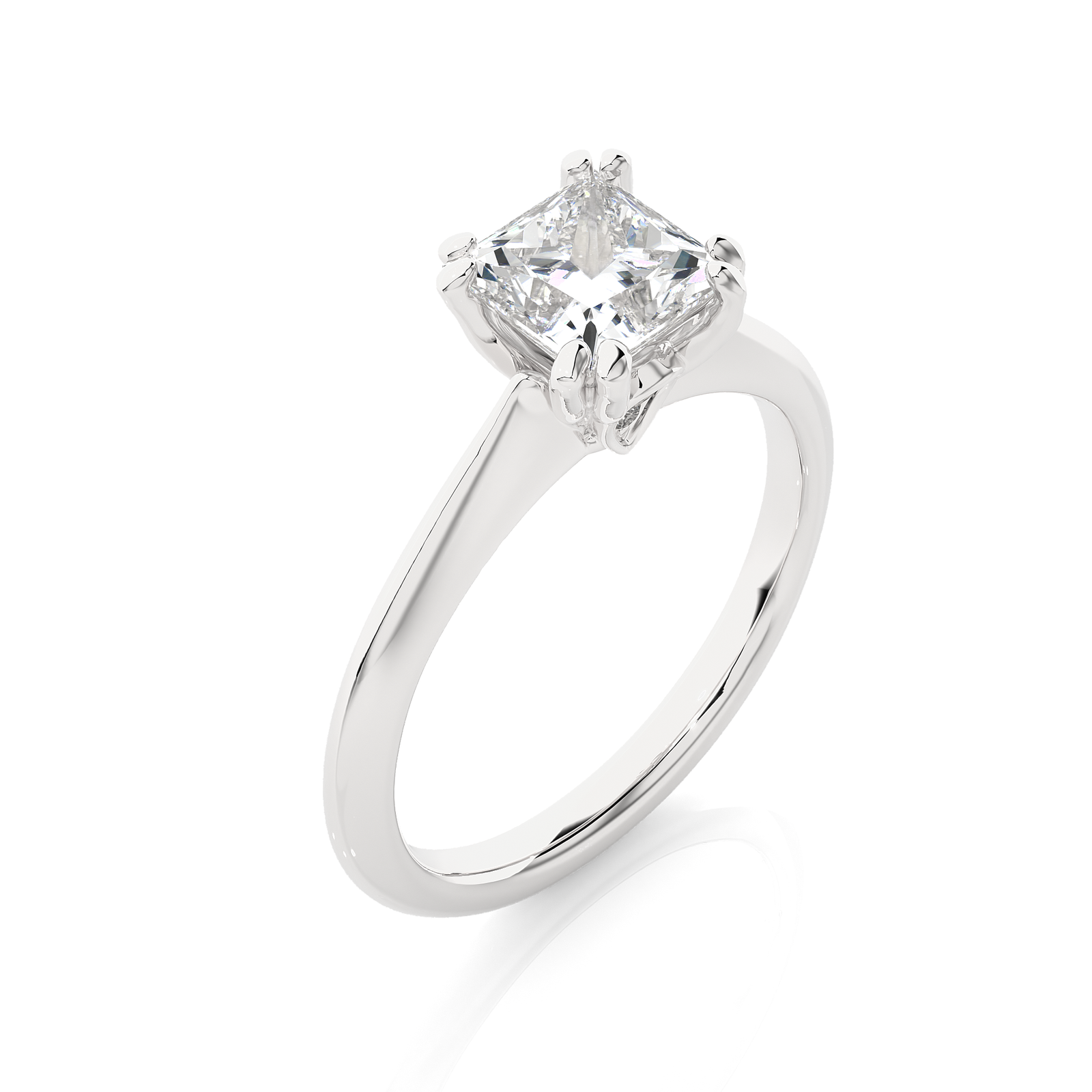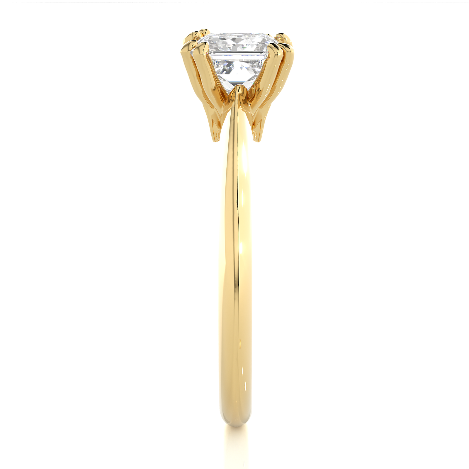 This solitaire engagement ring showcases a dazzling princess-cut diamond set in radiant yellow gold. The clean, elegant band highlights the brilliance of the center stone, making it a classic choice for the modern romantic. A perfect symbol of enduring love and sophisticated simplicity.