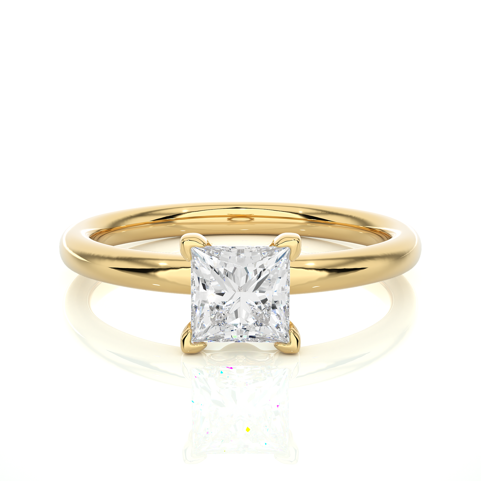 A timeless expression of elegance, this solitaire ring showcases a brilliant princess-cut diamond set in a sleek yellow gold band. Its minimal yet refined design highlights the diamond's sharp facets and modern appeal. Ideal for those who value sophistication in simplicity—perfect for engagements or everlasting style statements.