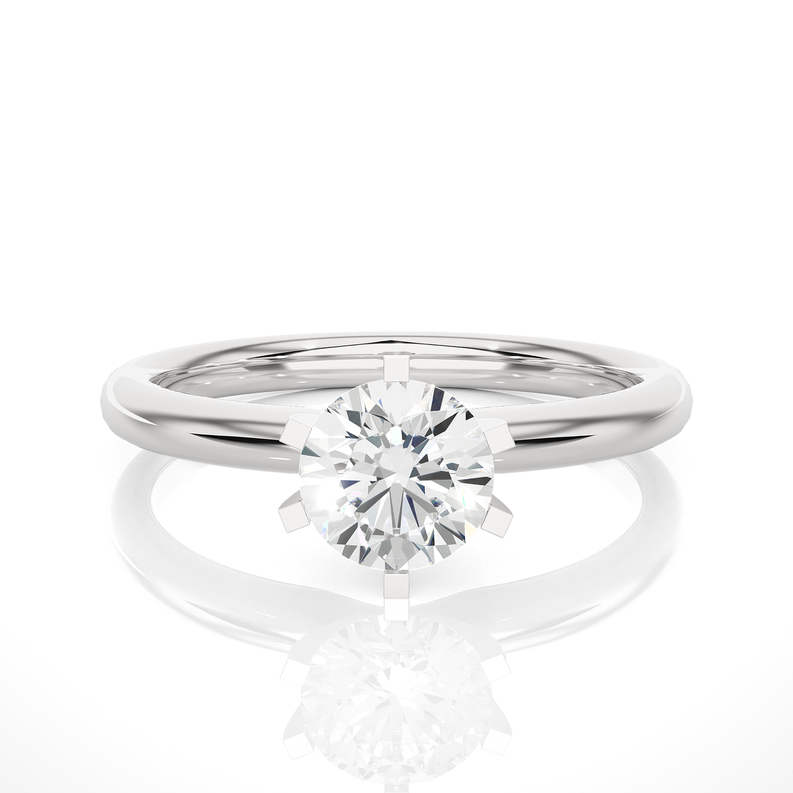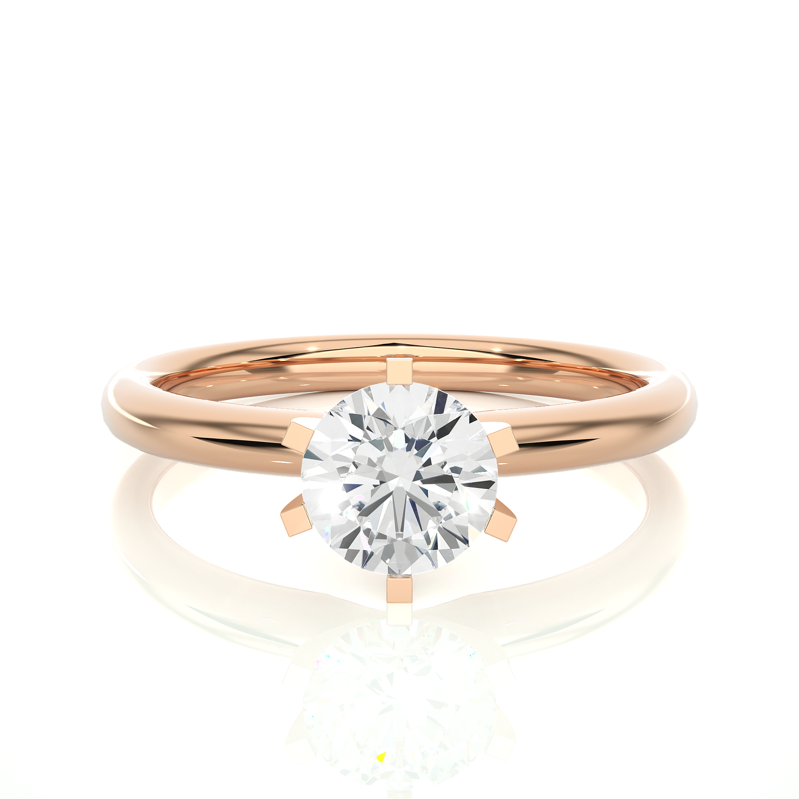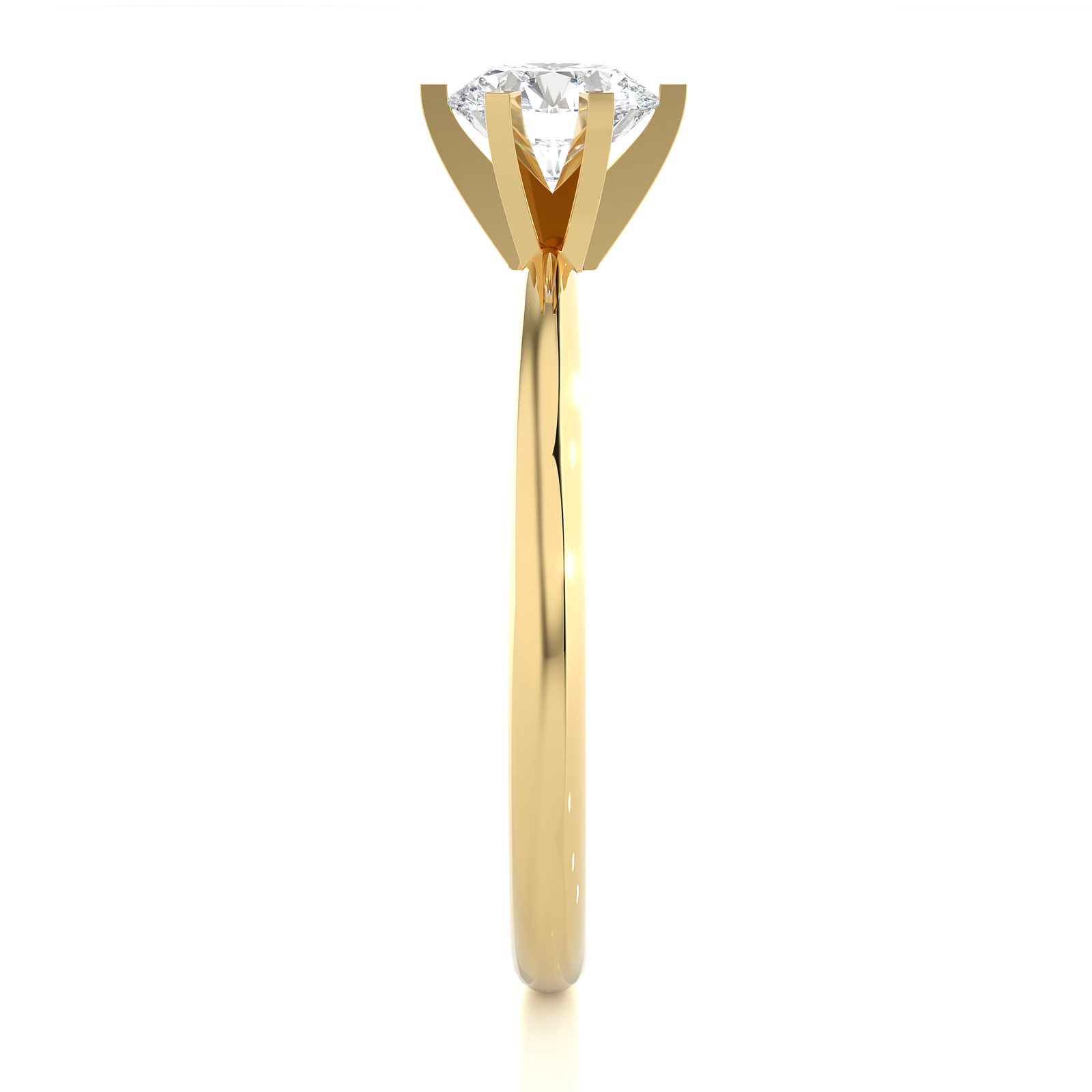 This round cut solitaire diamond ring is set in a sleek yellow gold band. The six-prong setting ensures both security and style, highlighting the brilliance of the center stone. Perfect for engagements or special occasions, this ring exudes classic charm and everlasting beauty.