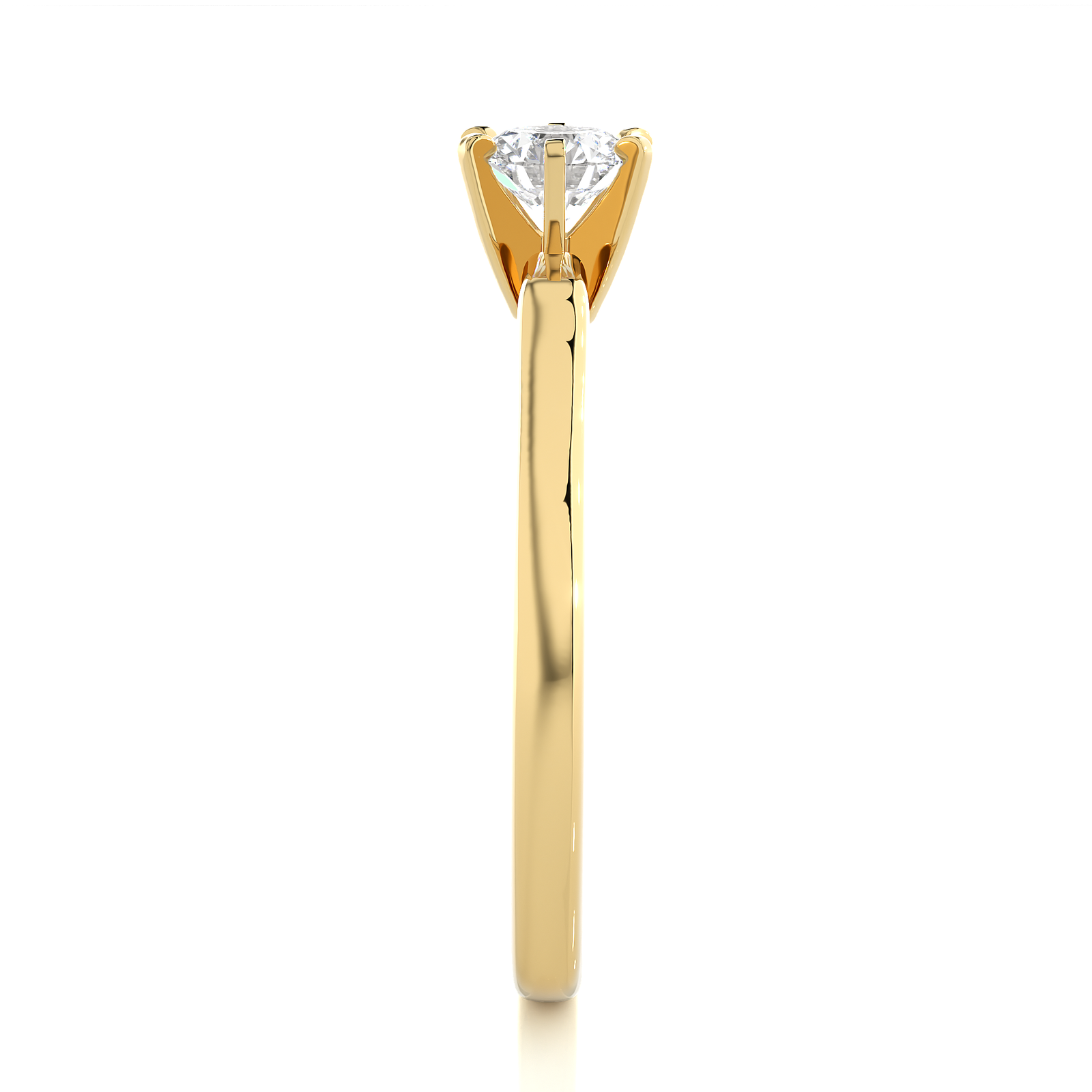 Experience timeless elegance with this exquisite round solitaire diamond ring. Set in a secure six-prong yellow gold setting, the dazzling center stone is elevated to shine from every angle. A gently tapered band enhances its classic beauty, making it a perfect symbol of love, commitment, and everlasting grace.