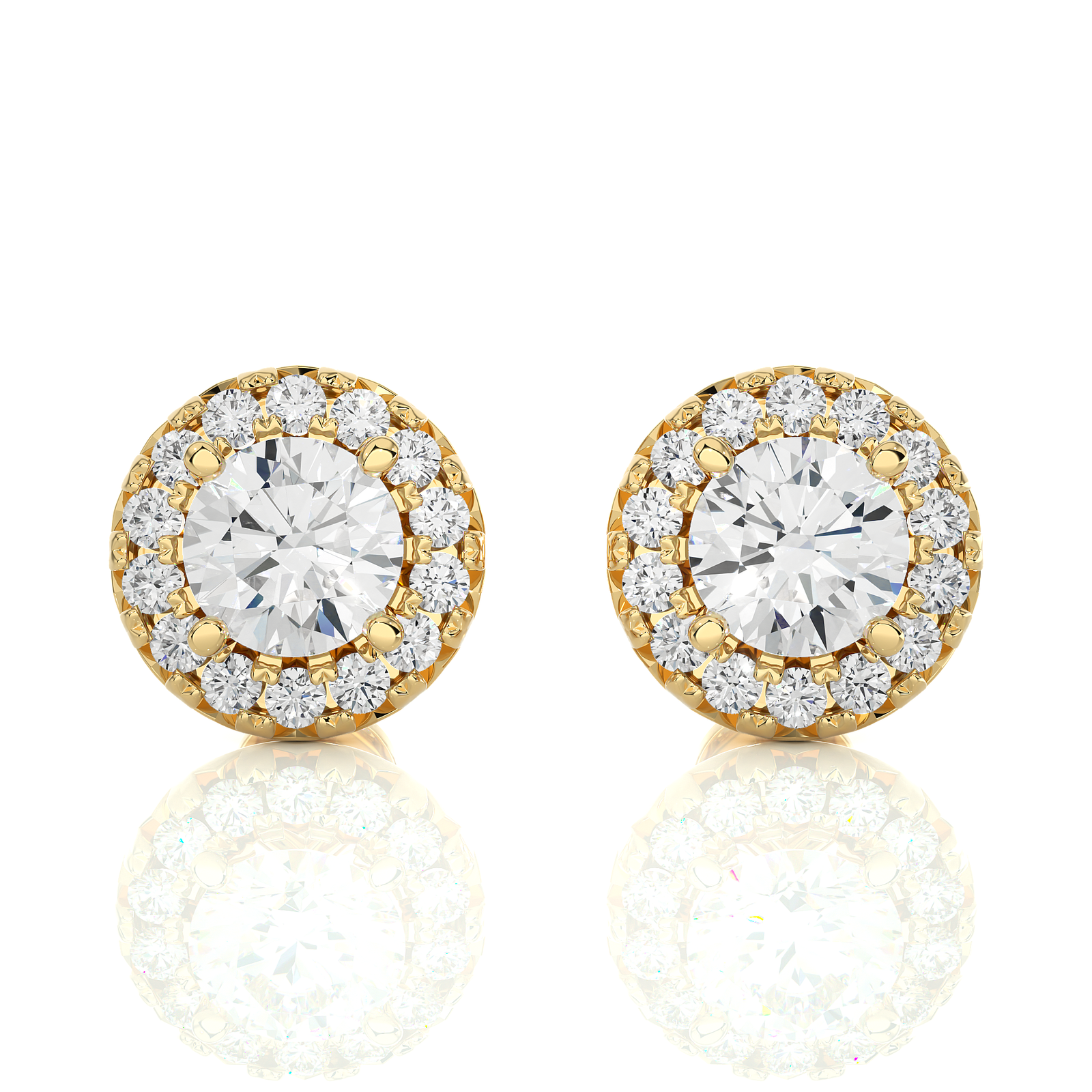 Hello angel, we’ve created your “never take off” diamond studs with a divine halo of diamonds. These handcrafted earrings feature a captivating diamond centerpiece, surrounded by a shimmering halo of smaller lab diamonds. Crafted in classic yellow, elegant white, or romantic rose gold, they offer a dazzling play of light and luxurious style. A beautiful gift for anniversaries, special occasions, or simply to celebrate her brilliance.