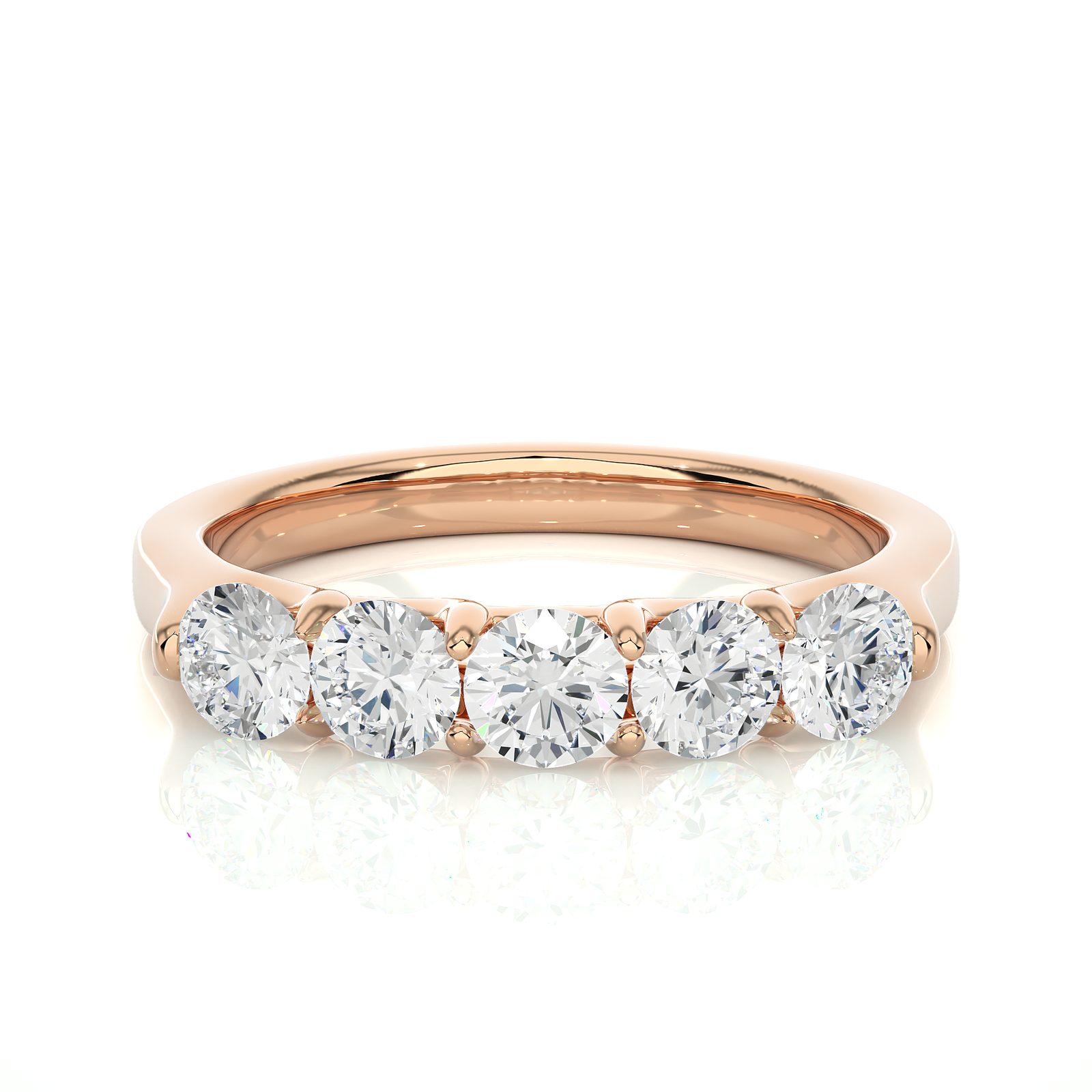 Timeless love with this elegant five-stone diamond ring. Set in lustrous white gold, each round brilliant diamond shines with exceptional clarity and brilliance. Perfect as an anniversary band or meaningful gift, this classic design symbolizes enduring commitment and radiant elegance. A refined piece for everyday wear or special occasions.
