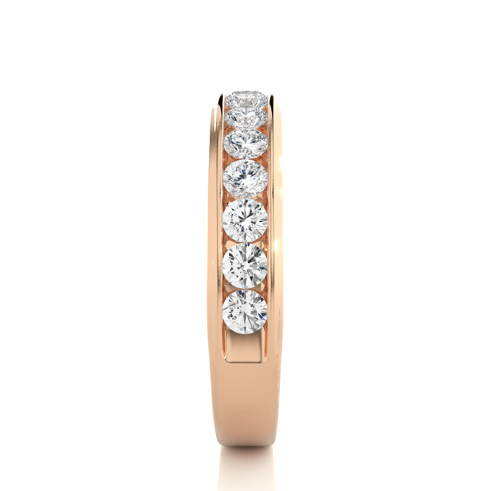 This classic white gold band features stunning channel-set round diamonds, offering a seamless and secure sparkle. Its smooth edges provide comfort while maintaining elegance, perfect for everyday wear or special occasions. A timeless piece symbolizing love and commitment with enduring beauty and refined craftsmanship.