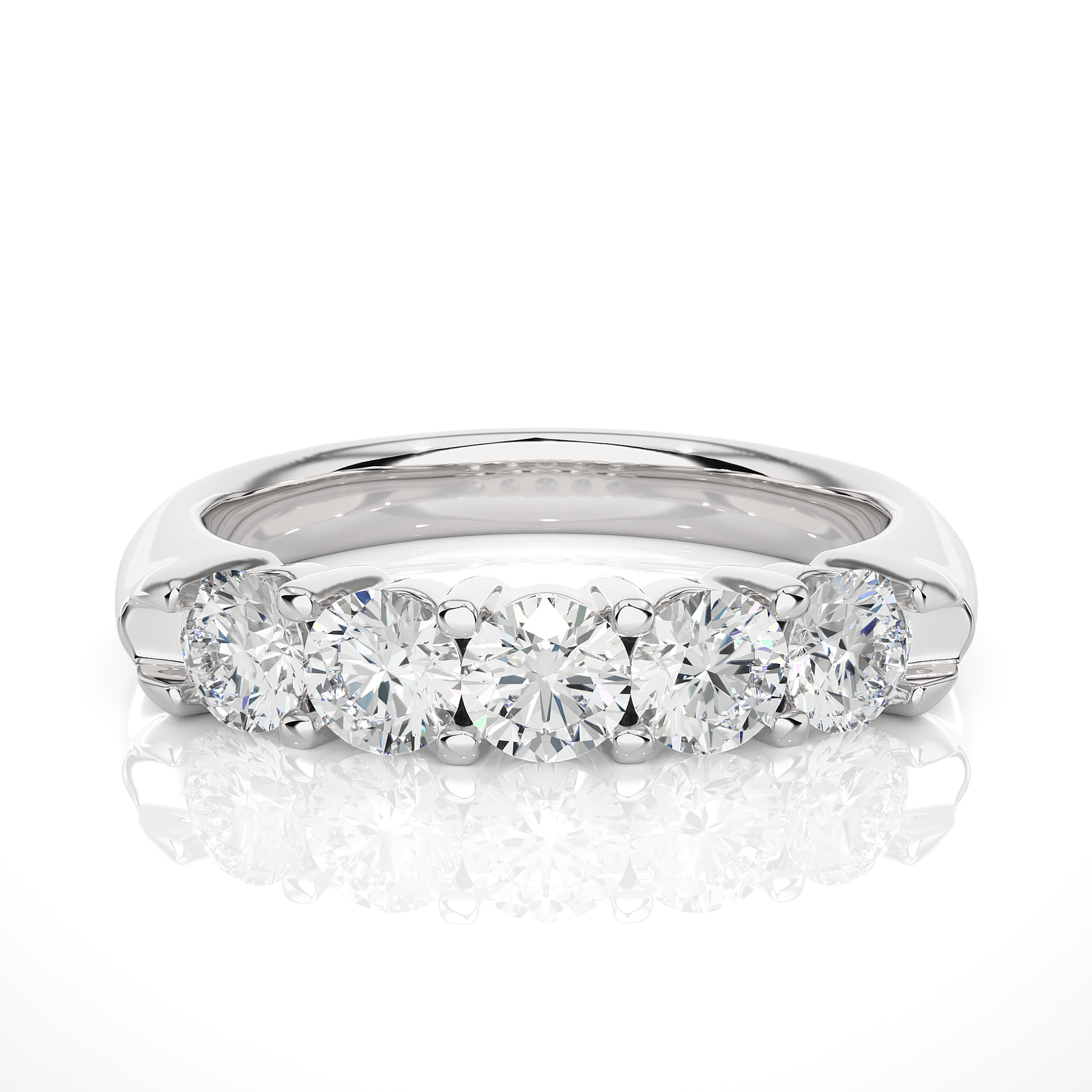 This five-stone diamond ring features brilliant round-cut diamonds set in rich yellow gold. Each stone symbolizes a cherished milestone, making it a meaningful choice for anniversaries or special moments. A graceful blend of classic charm and contemporary sparkle, perfect for celebrating love and lasting memories.