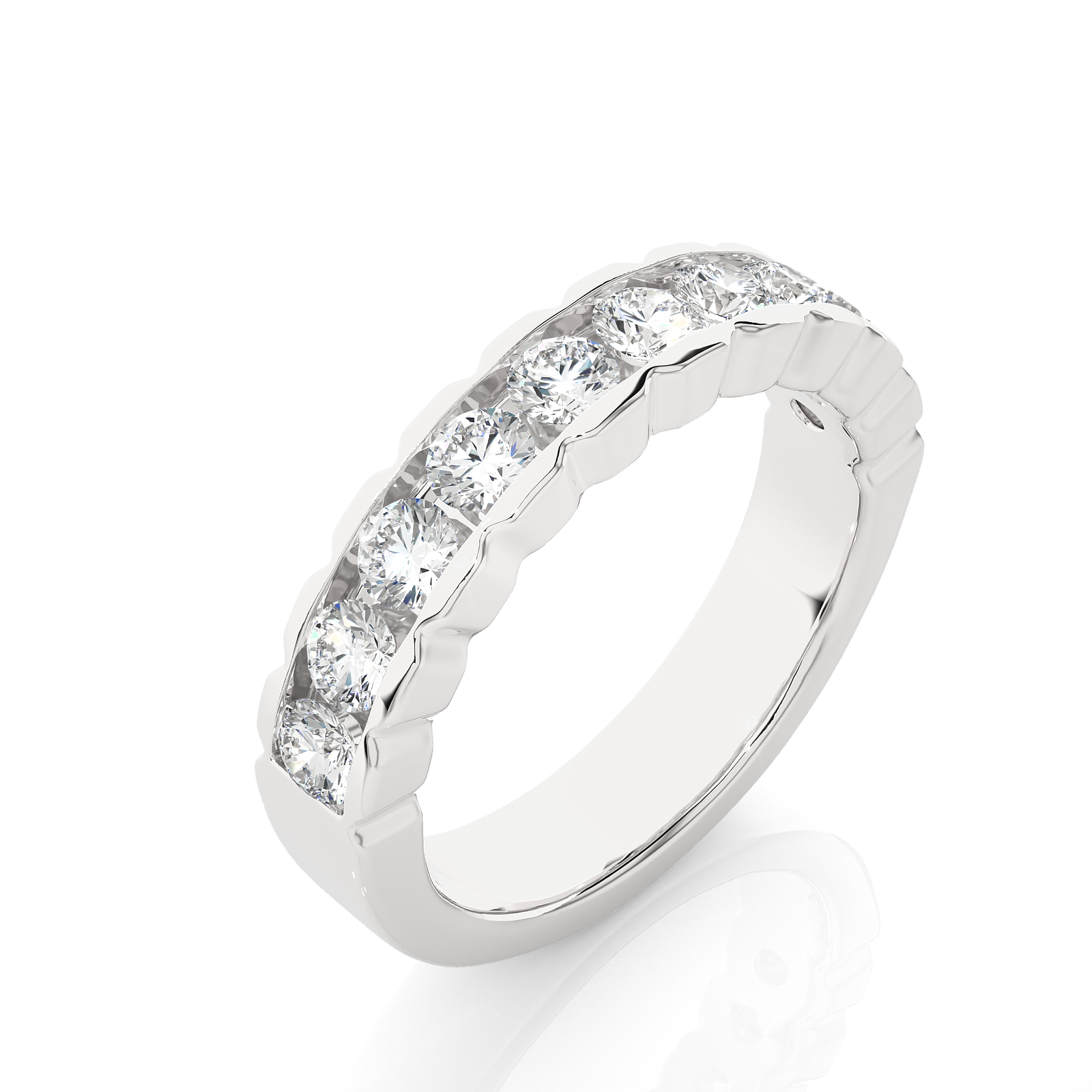 This bold round diamond band, set in luxurious yellow gold. Featuring a striking row of brilliant-cut diamonds in a distinctive grooved channel, this ring combines timeless sparkle with modern edge. Perfect as a wedding band or a dazzling accessory for everyday elegance and sophistication.