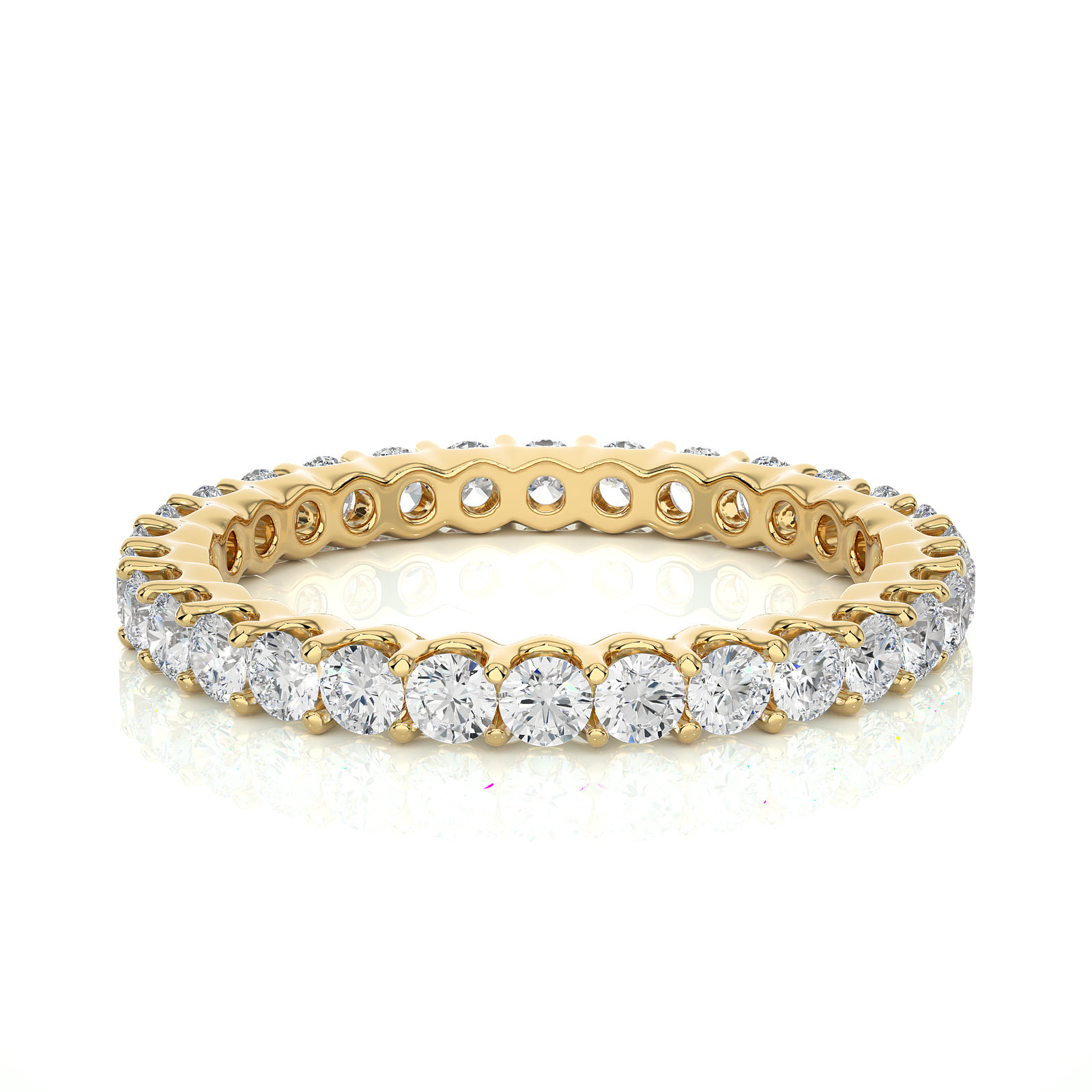 Celebrate eternal love with this exquisite round-cut diamond eternity ring, beautifully set in warm, Featuring a full circle of brilliant-cut diamonds, each stone is meticulously prong-set for maximum sparkle and a seamless, luxurious look.