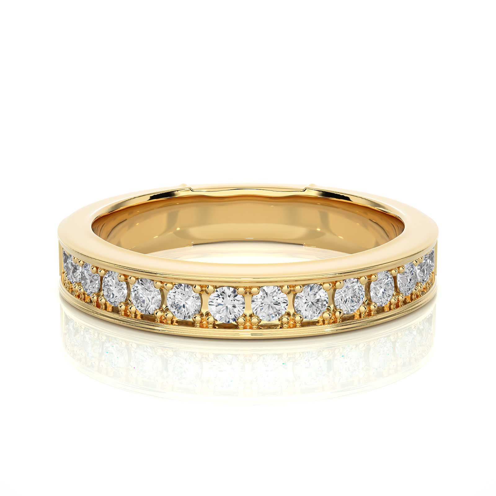 This channel set diamond ring features a row of round brilliant diamonds nestled securely in a sleek white gold band. The clean lines and classic design make it perfect as a wedding band or anniversary ring. A graceful symbol of everlasting love and sophistication for everyday elegance.