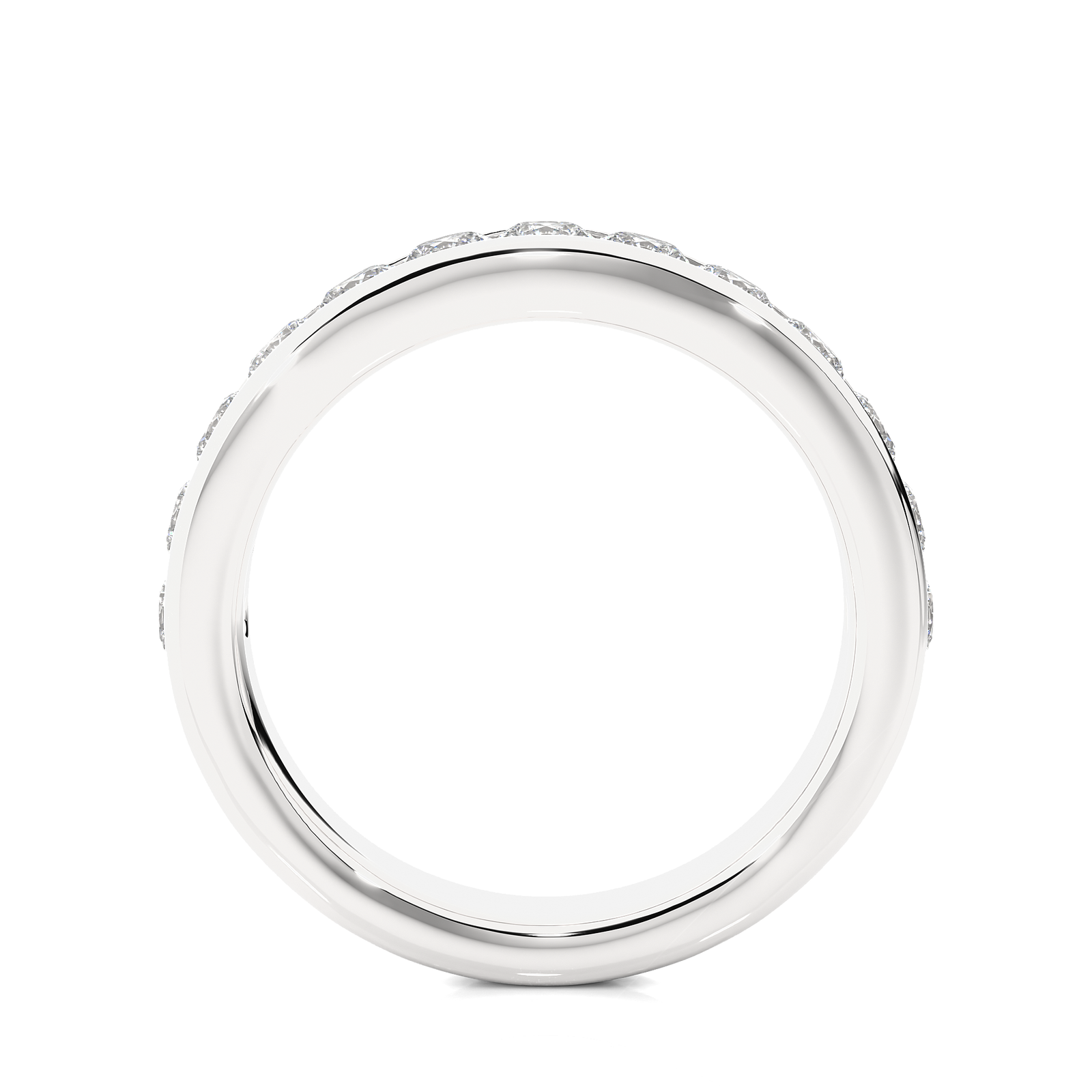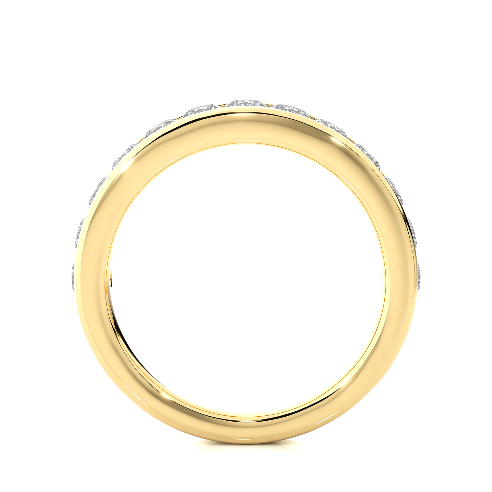 This stunning gold eternity band showcases a continuous circle of sparkling round diamonds, symbolizing everlasting love. The channel setting secures each stone while offering a sleek, modern look. Perfect for anniversaries, weddings, or special occasions, this timeless piece combines elegance and brilliance for everyday wear.