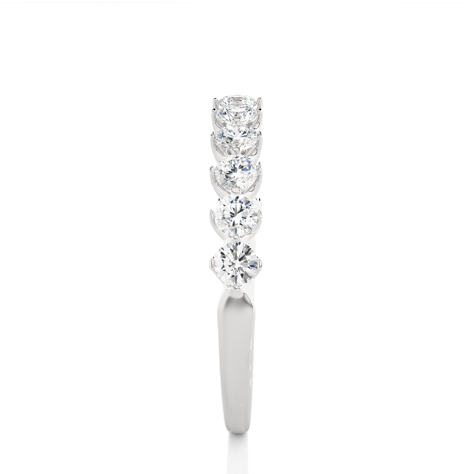 This exquisite white gold half eternity ring features a delicate row of brilliant round diamonds set in a classic prong setting. Perfect for stacking or wearing alone, it symbolizes everlasting love and adds a touch of sophistication to any outfit, making it ideal for special occasions or everyday elegance.