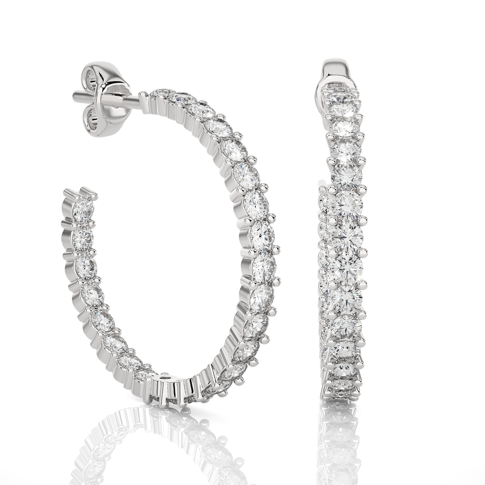 Elevate your elegance with these stunning inside-out hoop earrings in romantic rose gold. Adorned with brilliant round-cut diamonds along both the inner and outer edges, these hoops shine from every angle. Perfectly crafted for timeless beauty and sparkle, they add a luxurious touch to any look, day or night.