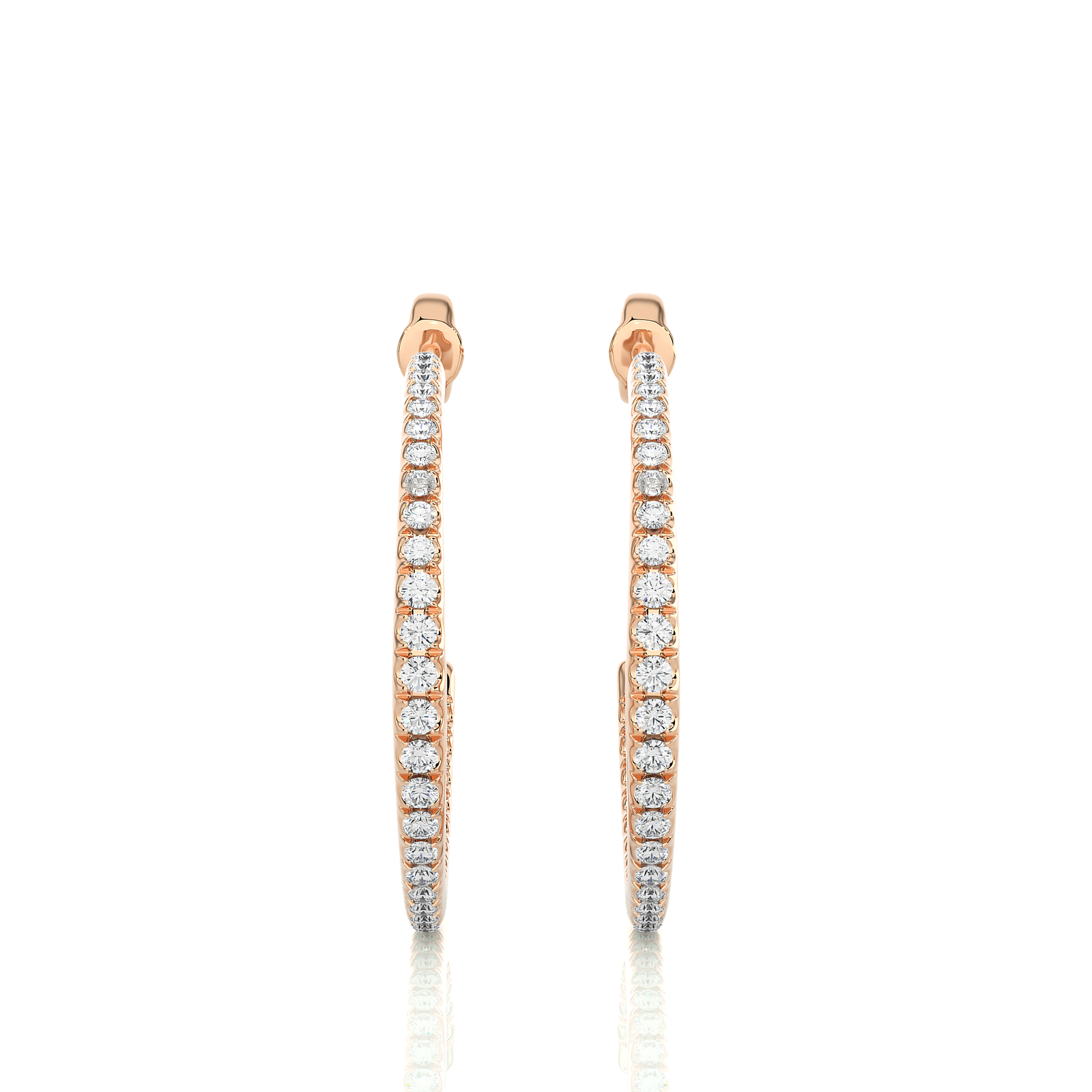 These gold hoop earrings showcase a sleek curve lined with dazzling round-cut diamonds. Designed for modern sophistication, the diamonds shimmer from every angle, adding a graceful sparkle to your everyday or evening look. Lightweight yet luxurious, they’re the perfect blend of timeless charm and contemporary style.