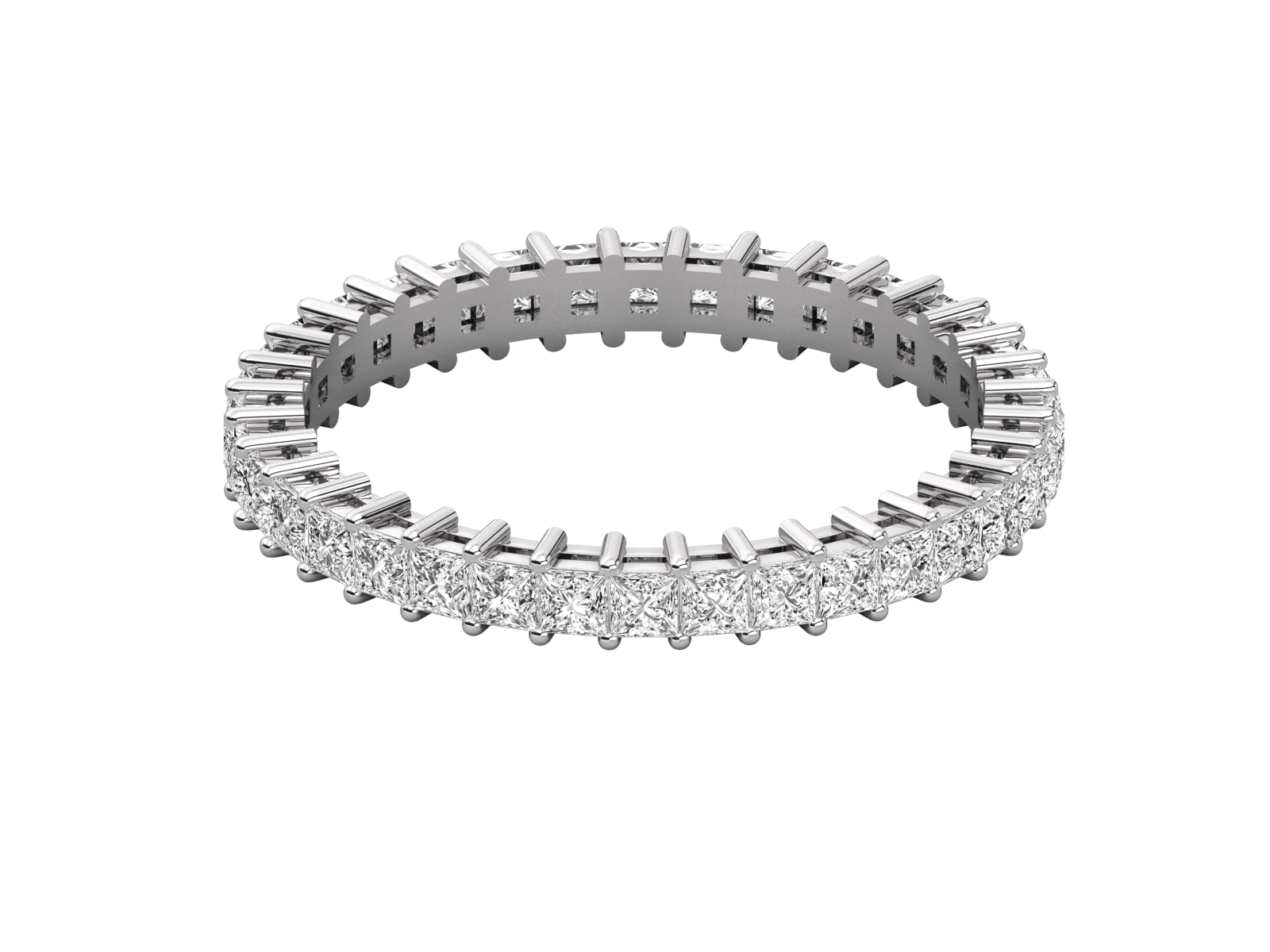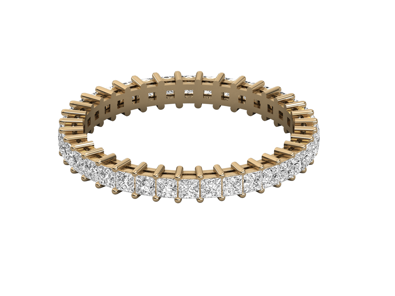 This elegant eternity band features a continuous circle of princess-cut diamonds set in luxurious solid gold. The sleek shared-prong setting enhances brilliance from every angle, symbolizing everlasting love and commitment. Perfect as a wedding band, anniversary gift, or stacking ring, this timeless piece adds radiant sparkle to any jewelry collection.