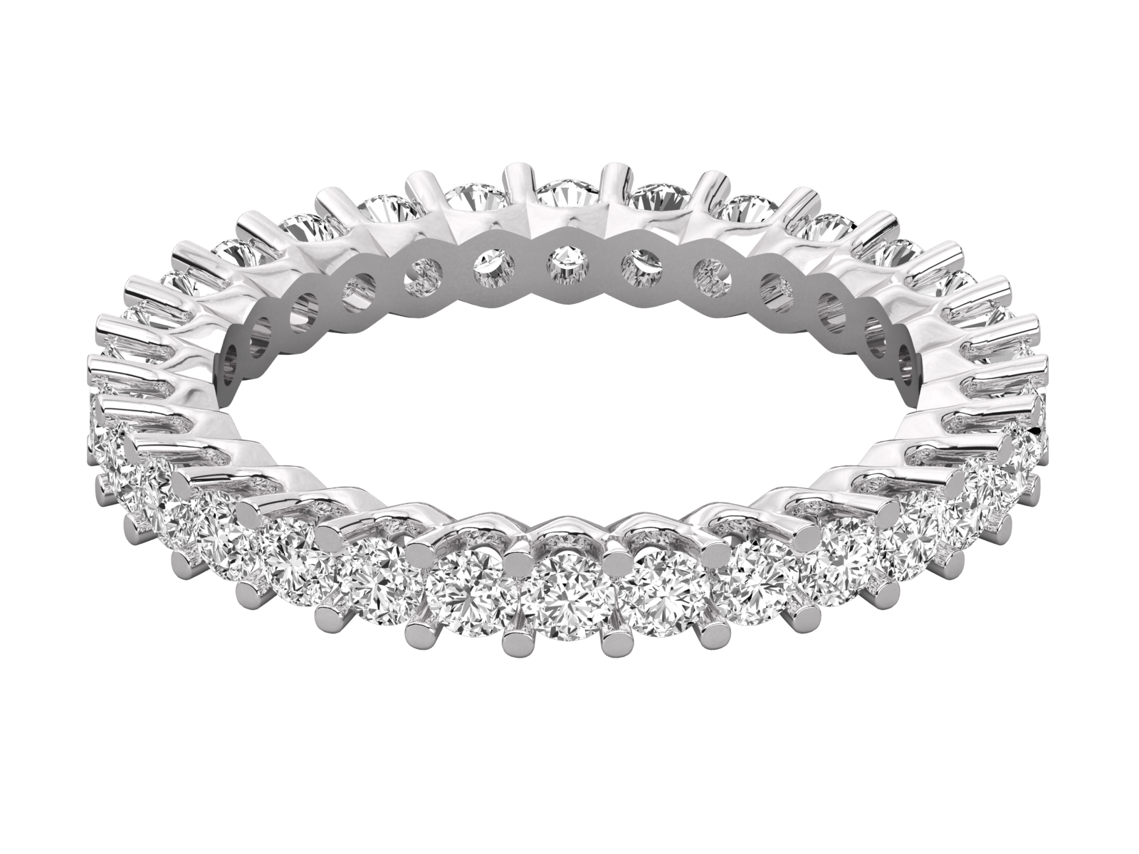 This solid gold eternity band features a continuous circle of round-cut diamonds in a secure prong setting. A timeless symbol of everlasting love, this ring is ideal as a wedding band or anniversary gift, blending classic charm with luxurious sparkle for a truly elegant statement.