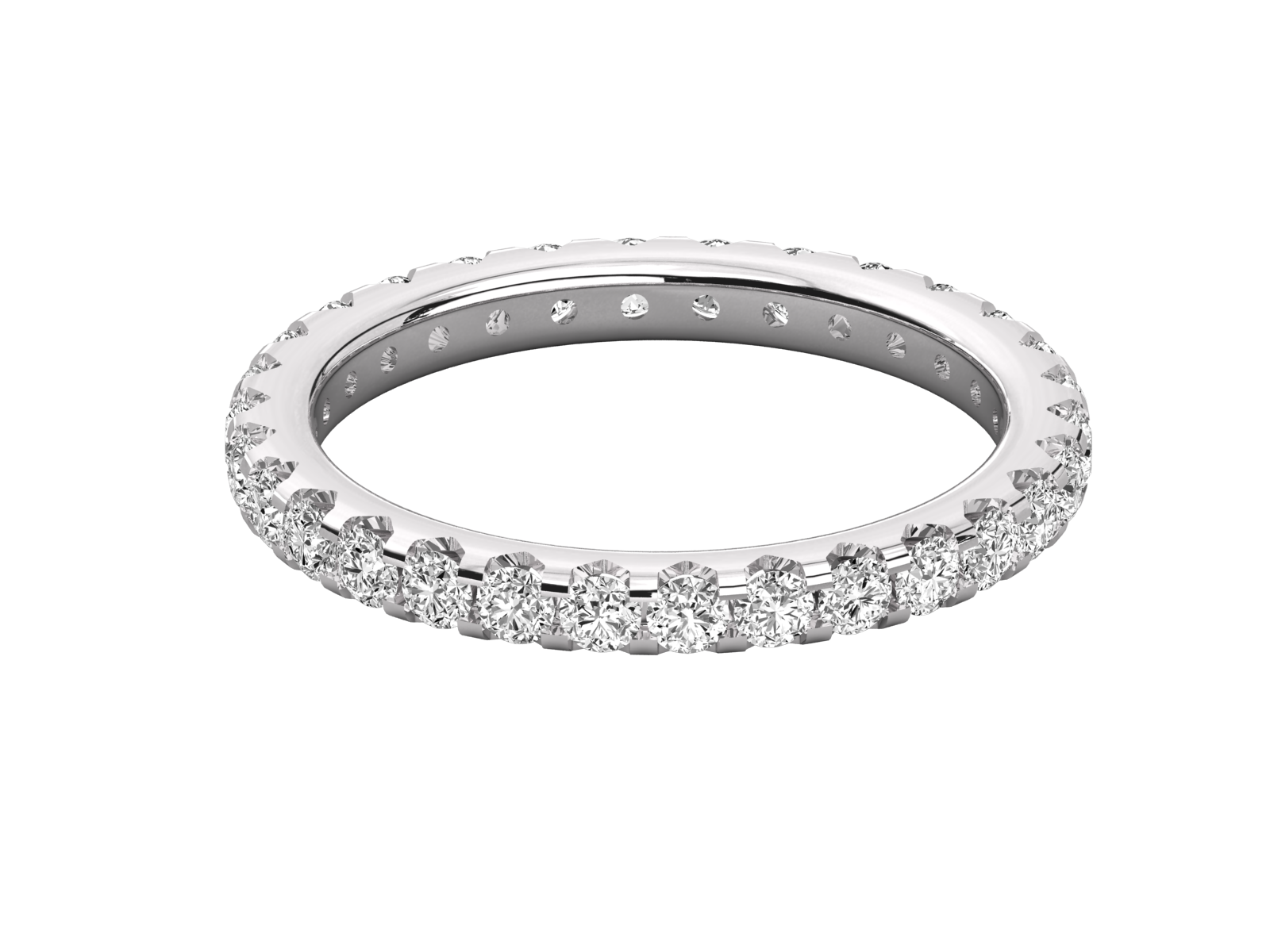 This radiant gold eternity band features a continuous circle of brilliant round diamonds set in sleek prong settings for maximum brilliance. Symbolizing unending love and commitment, it brings subtle glamour to any collection—whether worn alone, stacked, or as a wedding band, its timeless, shimmering elegance endures forever.