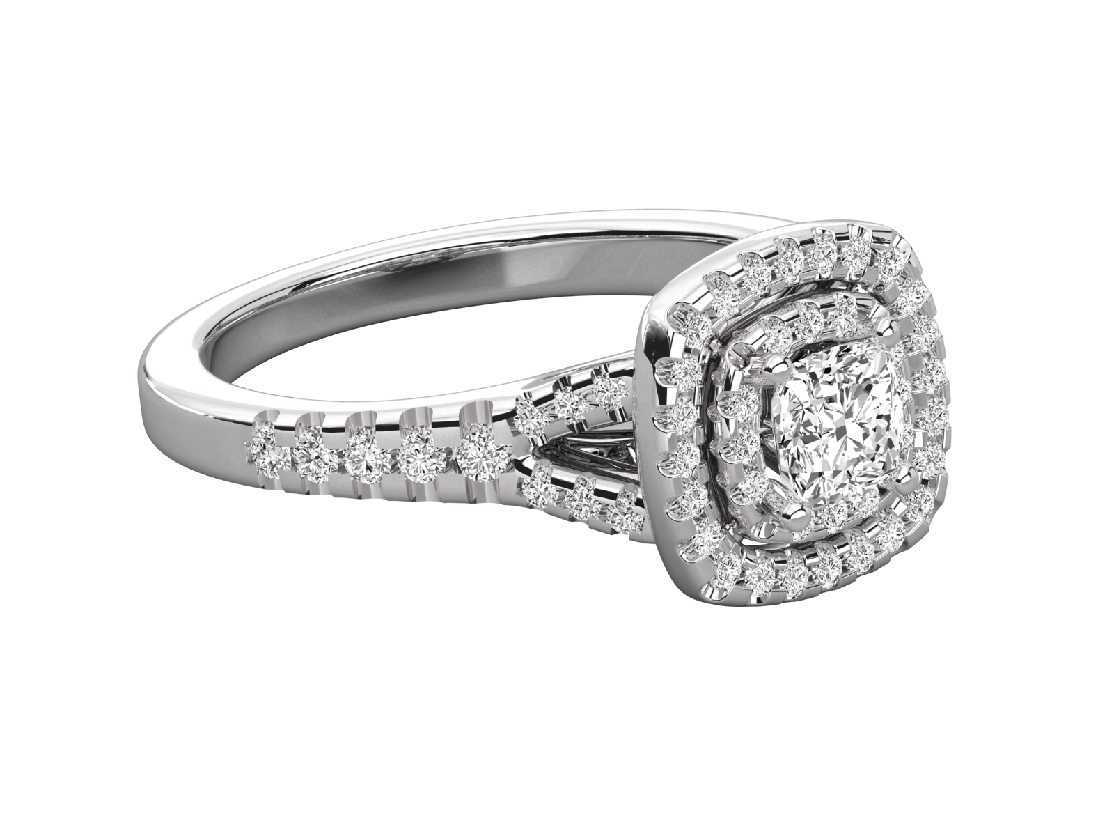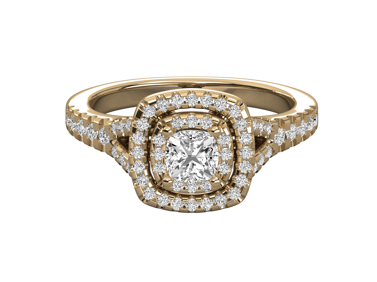 This romantic engagement ring showcases a dazzling round brilliant diamond encircled by a luxurious double halo of pavé-set diamonds. Crafted in warm rose gold, the band sparkles with additional diamonds for maximum brilliance. A perfect blend of elegance and glamour, symbolizing everlasting love and making every proposal unforgettable.