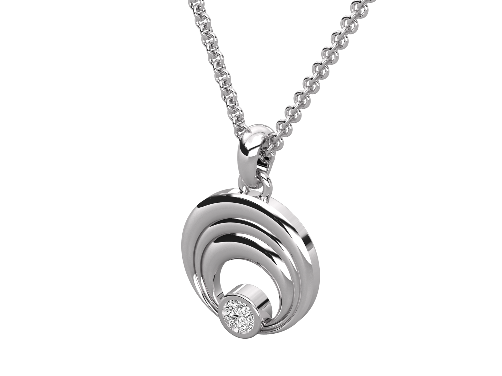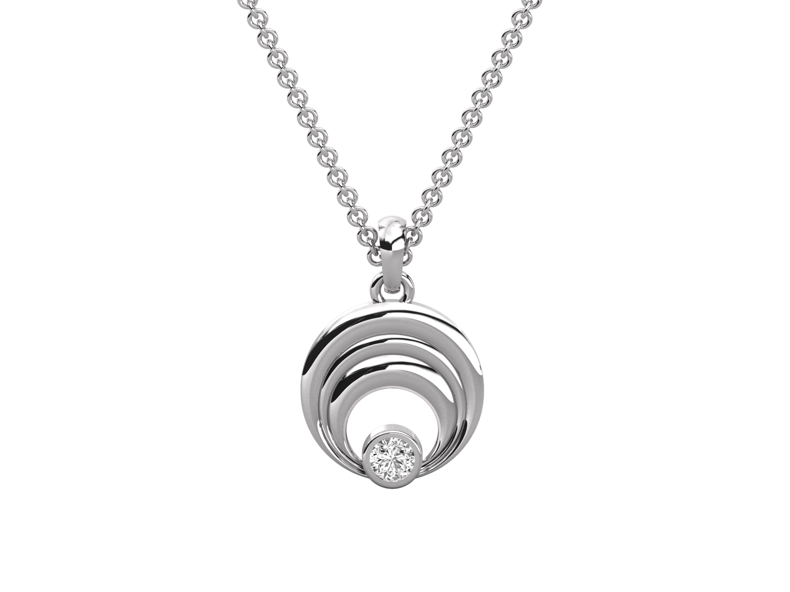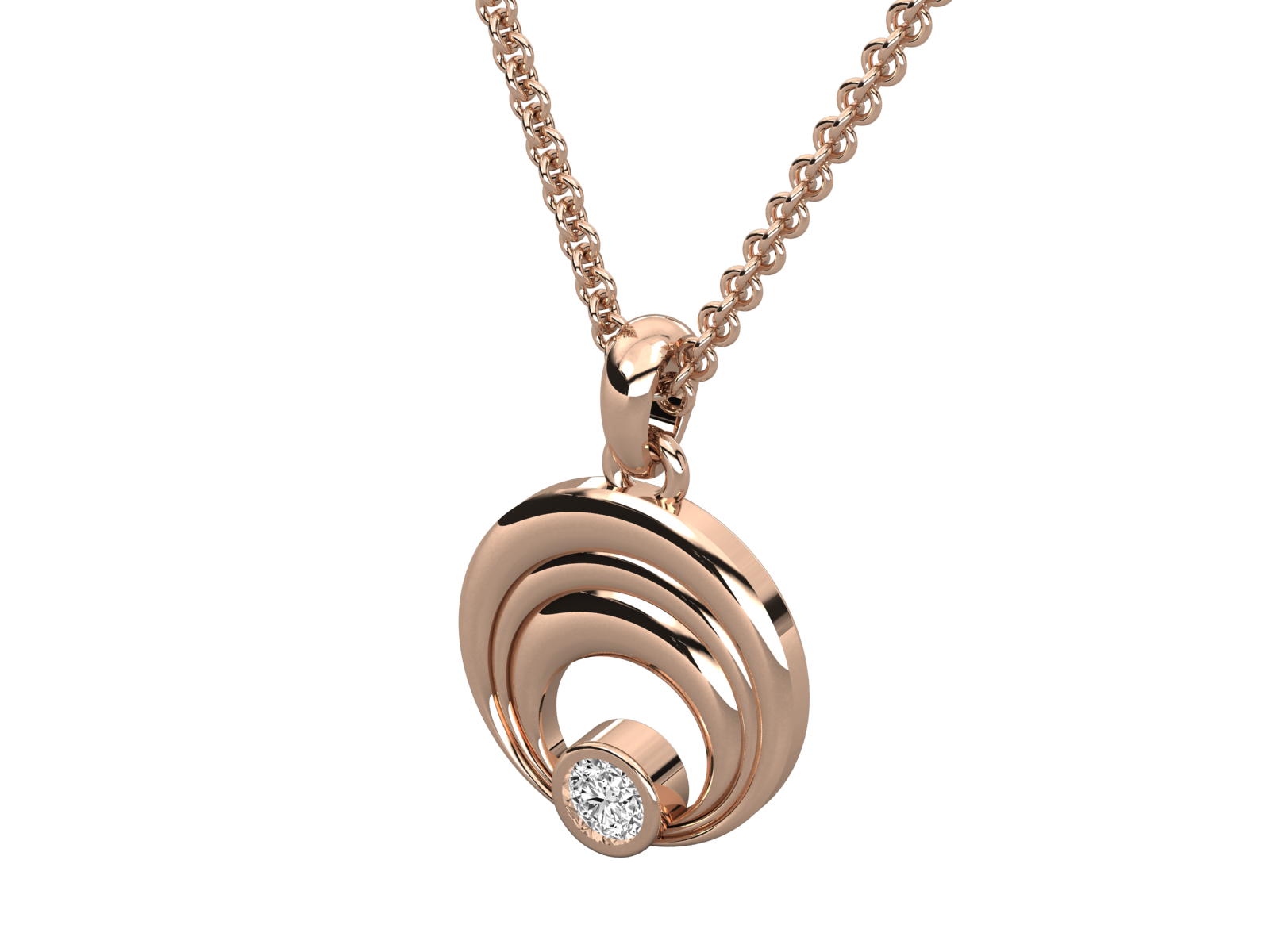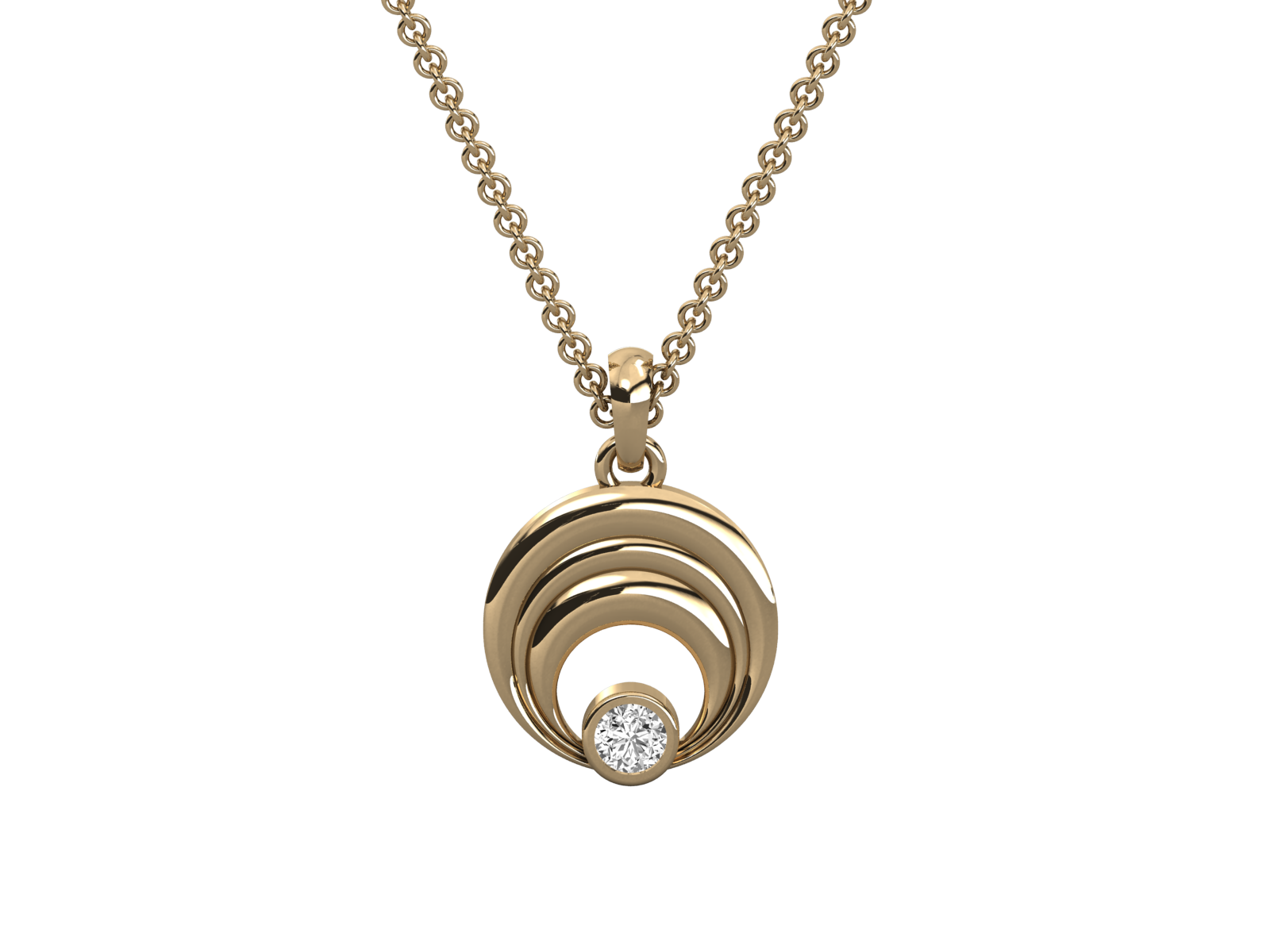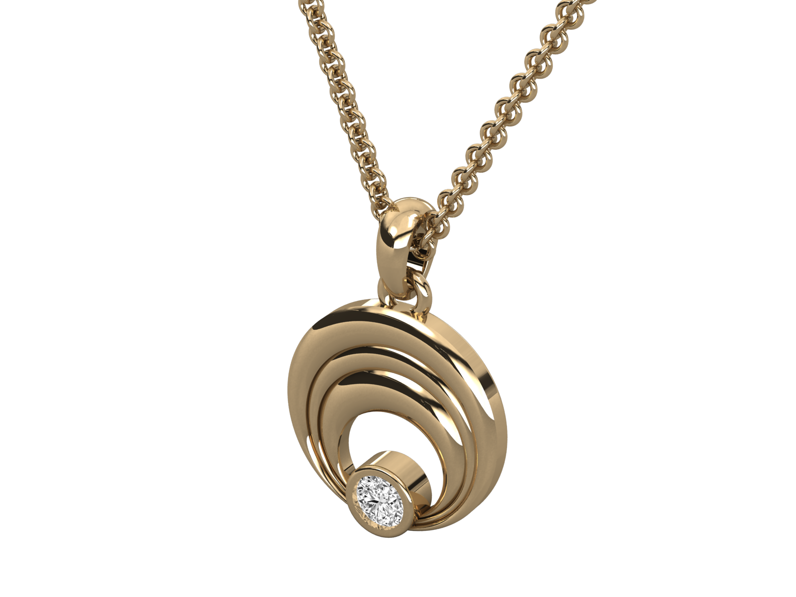 This contemporary gold pendant features a wave-inspired layered design that gracefully draws the eye to a single brilliant-cut diamond at its center. Sleek, minimal, and sophisticated, it’s a perfect choice for those who appreciate understated elegance. Ideal for both daily wear and gifting, symbolizing balance and timeless beauty.