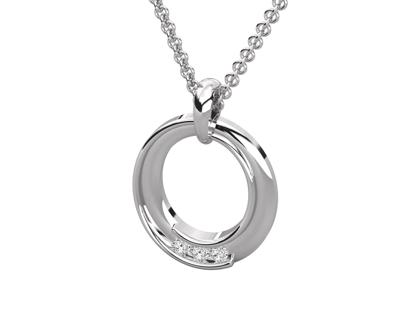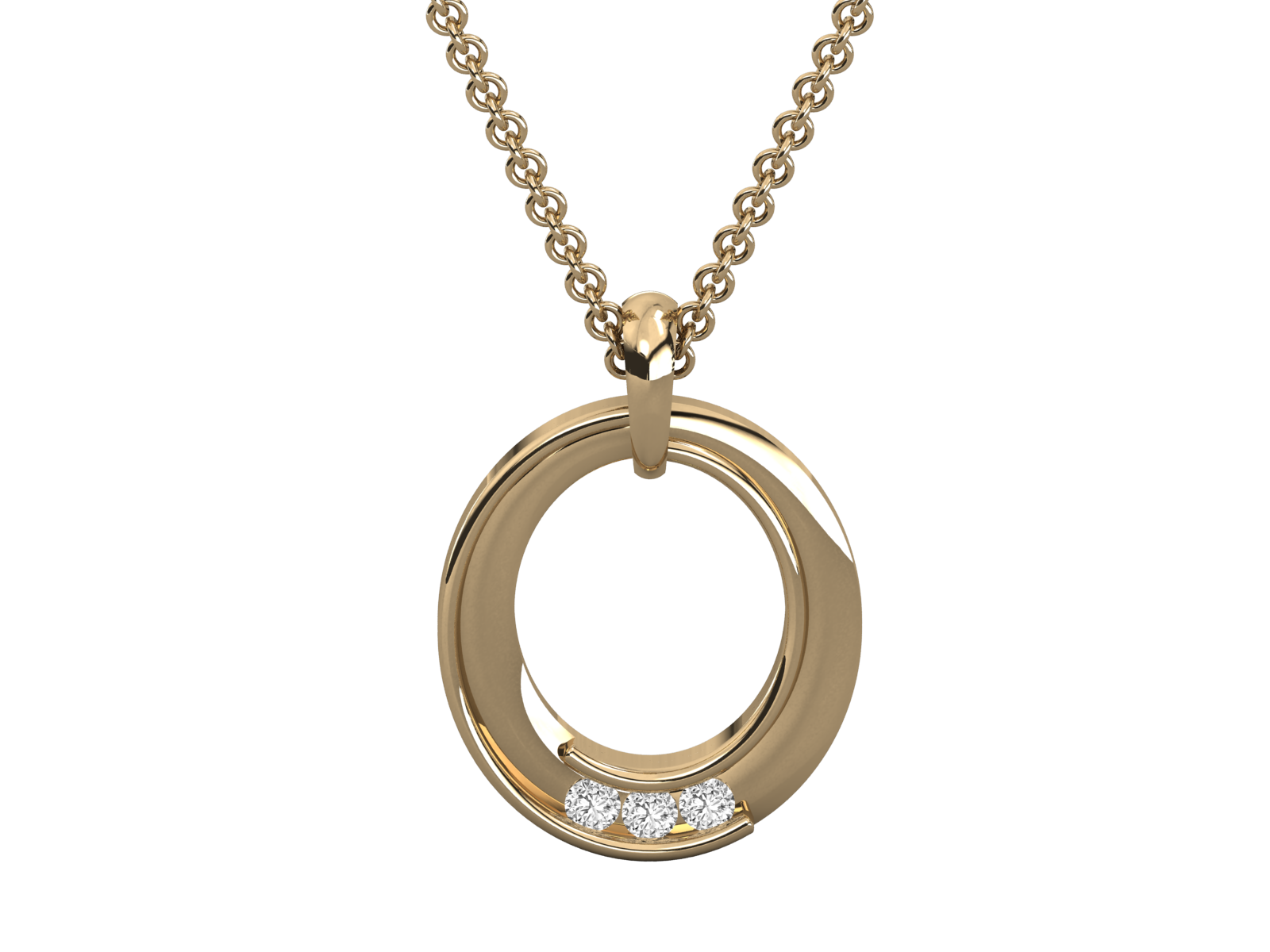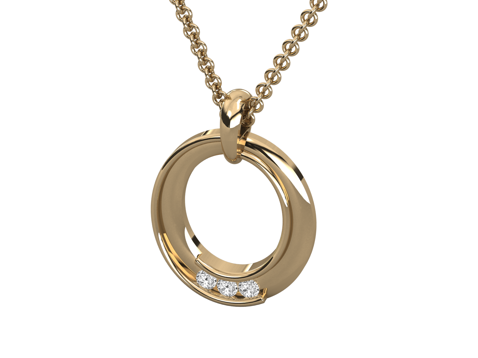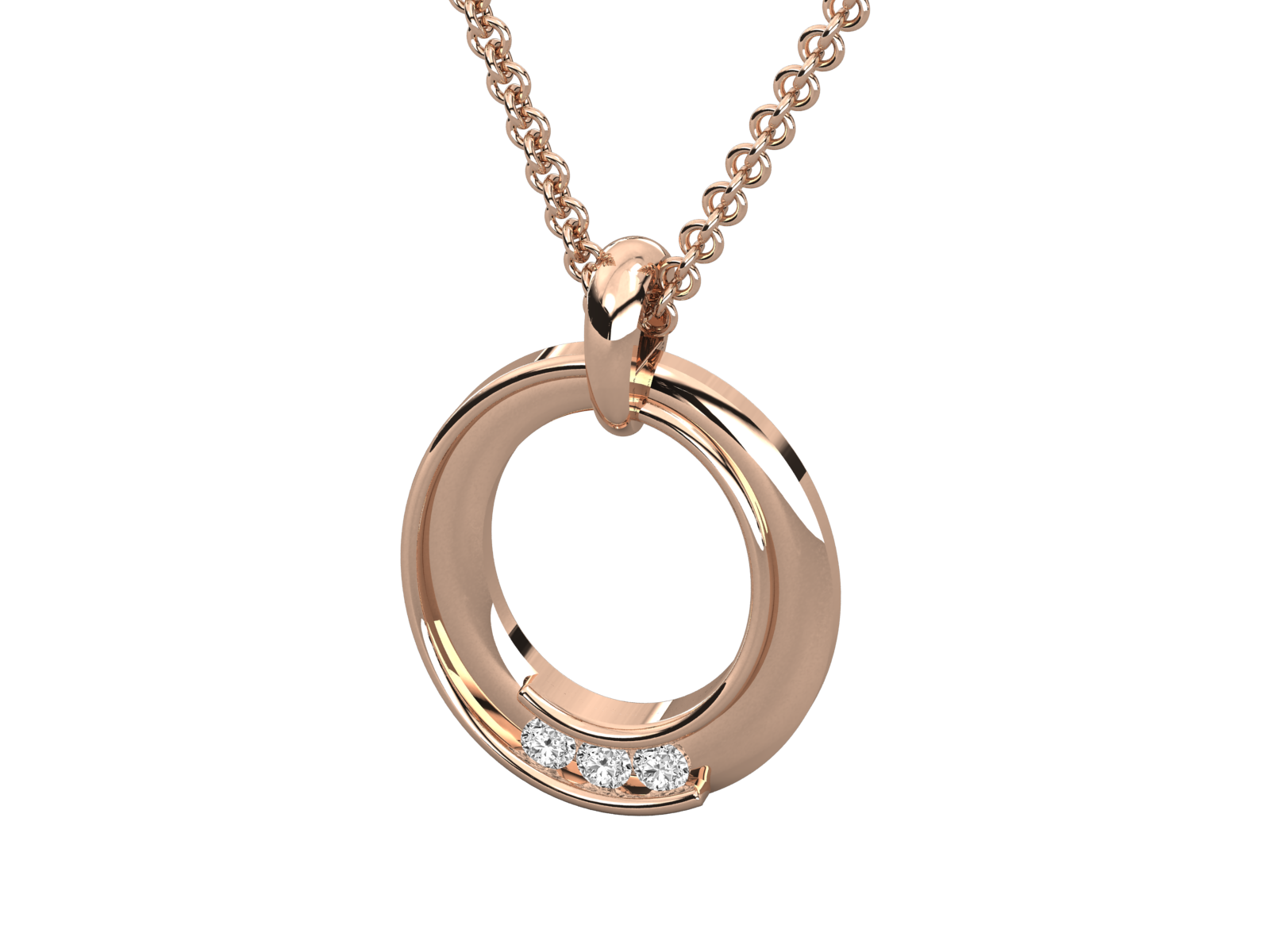 This minimalist circle pendant features three sparkling diamonds nestled at the base, symbolizing unity, eternity, and harmony. Its clean, modern silhouette makes it a versatile piece for everyday elegance or special occasions. A timeless expression of refined taste and meaningful simplicity in fine jewelry design.