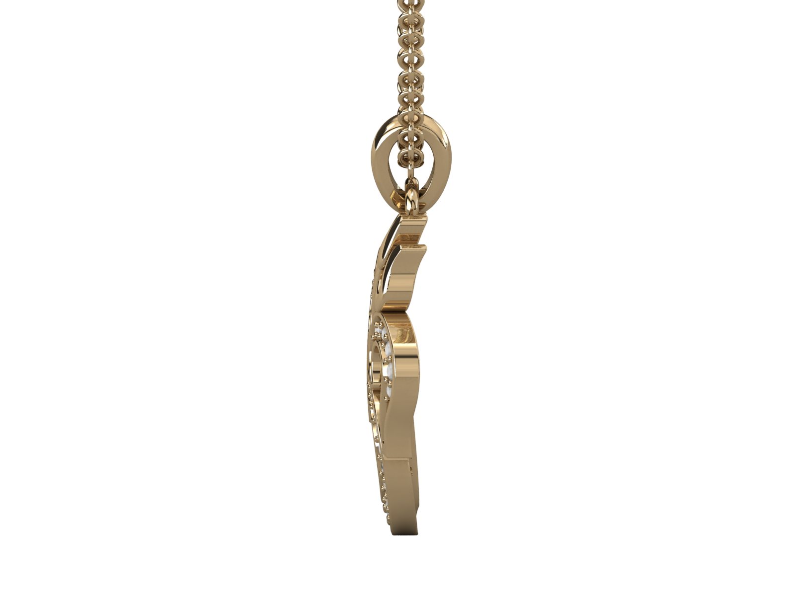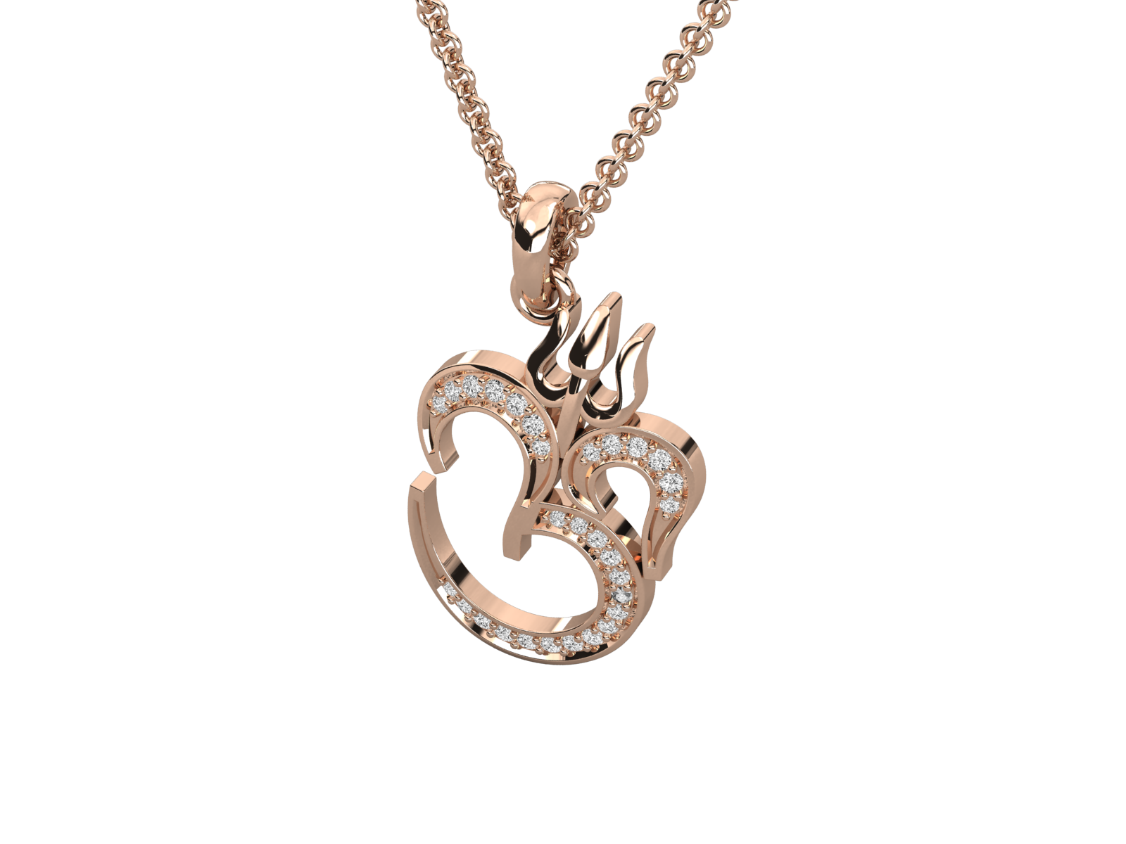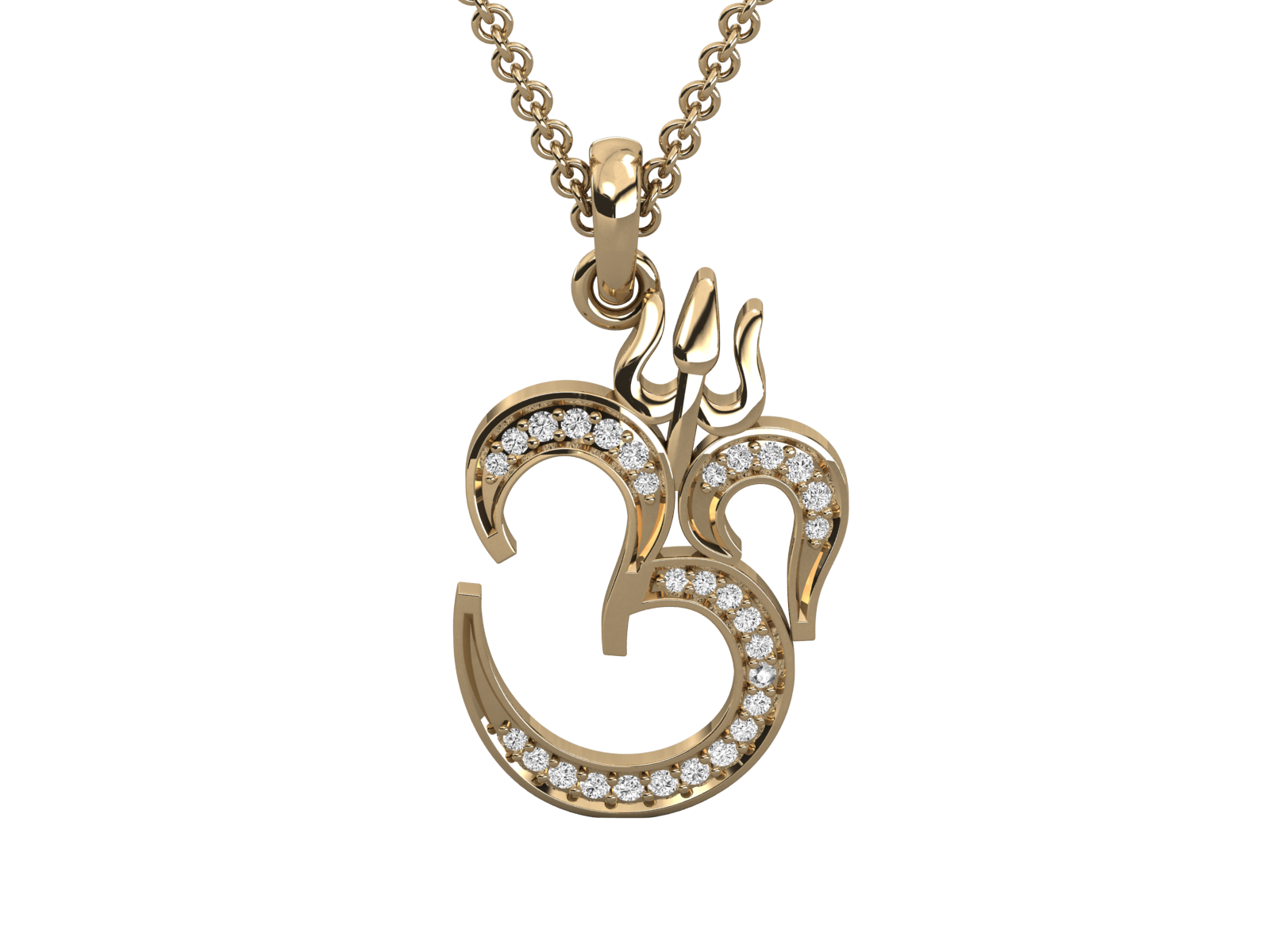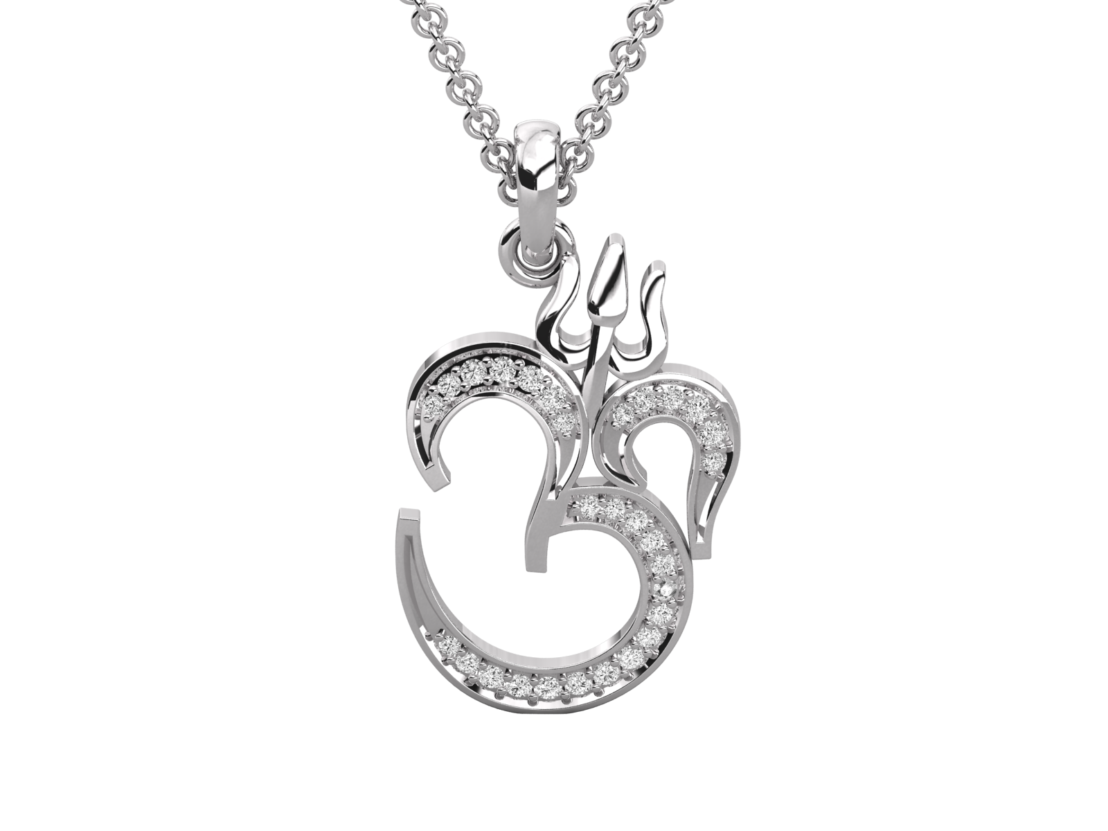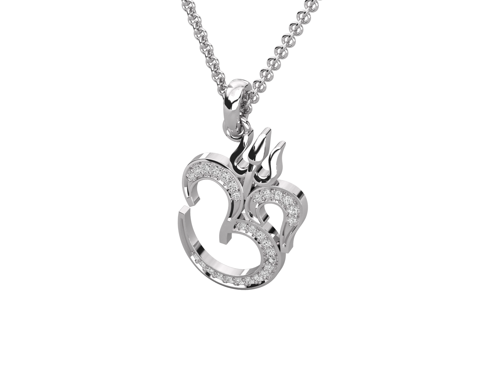 This sacred Om pendant, adorned with sparkling diamonds and topped with a Trishul motif, embodies spiritual energy and divine protection. Crafted in sleek white gold, it merges devotion with elegance. Ideal for daily wear or gifting, this design offers both aesthetic charm and a powerful symbol of inner peace and strength.