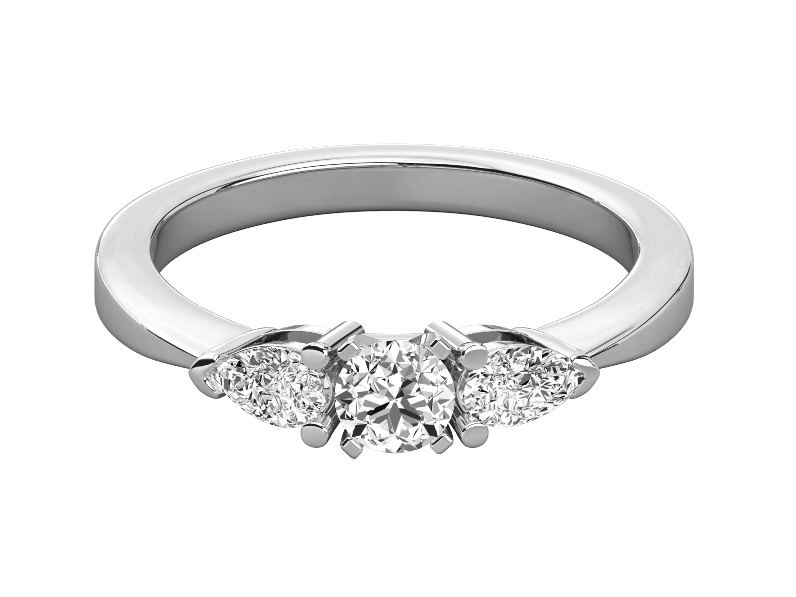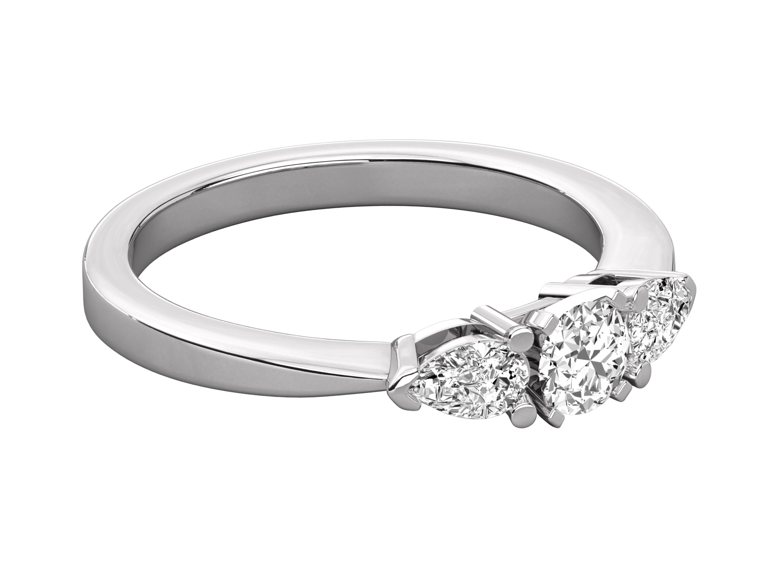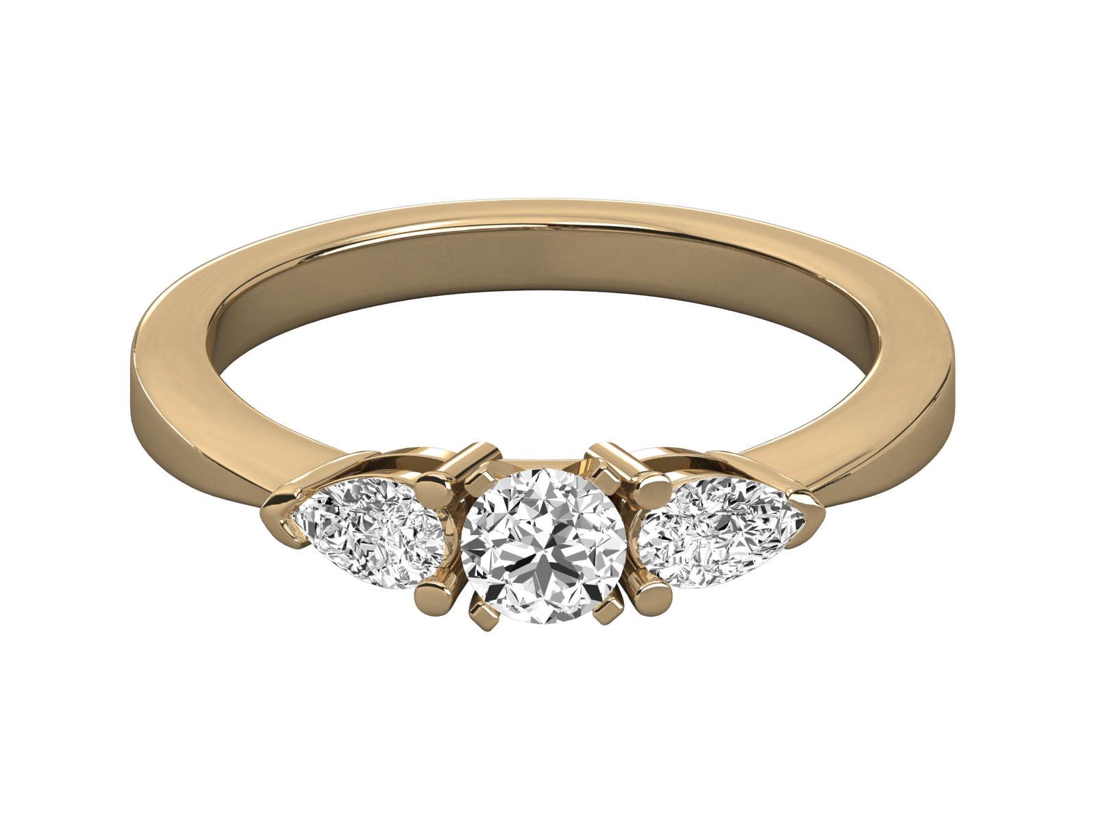 This elegant gold ring features a dazzling round-cut center diamond flanked by two shimmering pear-shaped diamonds. The timeless three-stone design symbolizes your past, present, and future, making it a perfect engagement or anniversary ring. Crafted for brilliance and beauty, it radiates sophistication and heartfelt meaning in every sparkle.