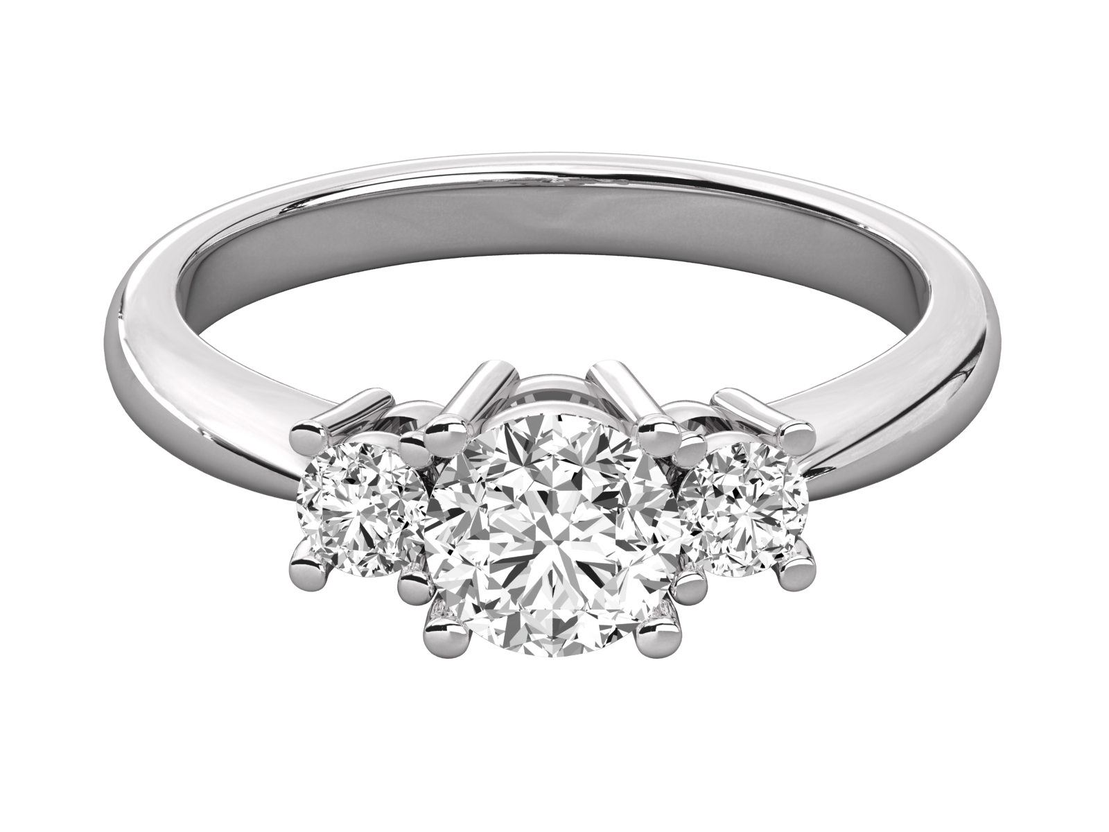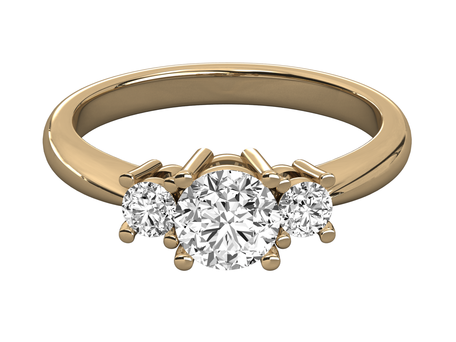 This timeless three-stone diamond ring features a brilliant round center diamond flanked by two sparkling side stones, all set in rich yellow gold. Symbolizing the past, present, and future, this elegant design makes it an ideal engagement or anniversary ring. A perfect blend of classic beauty and meaningful expression.