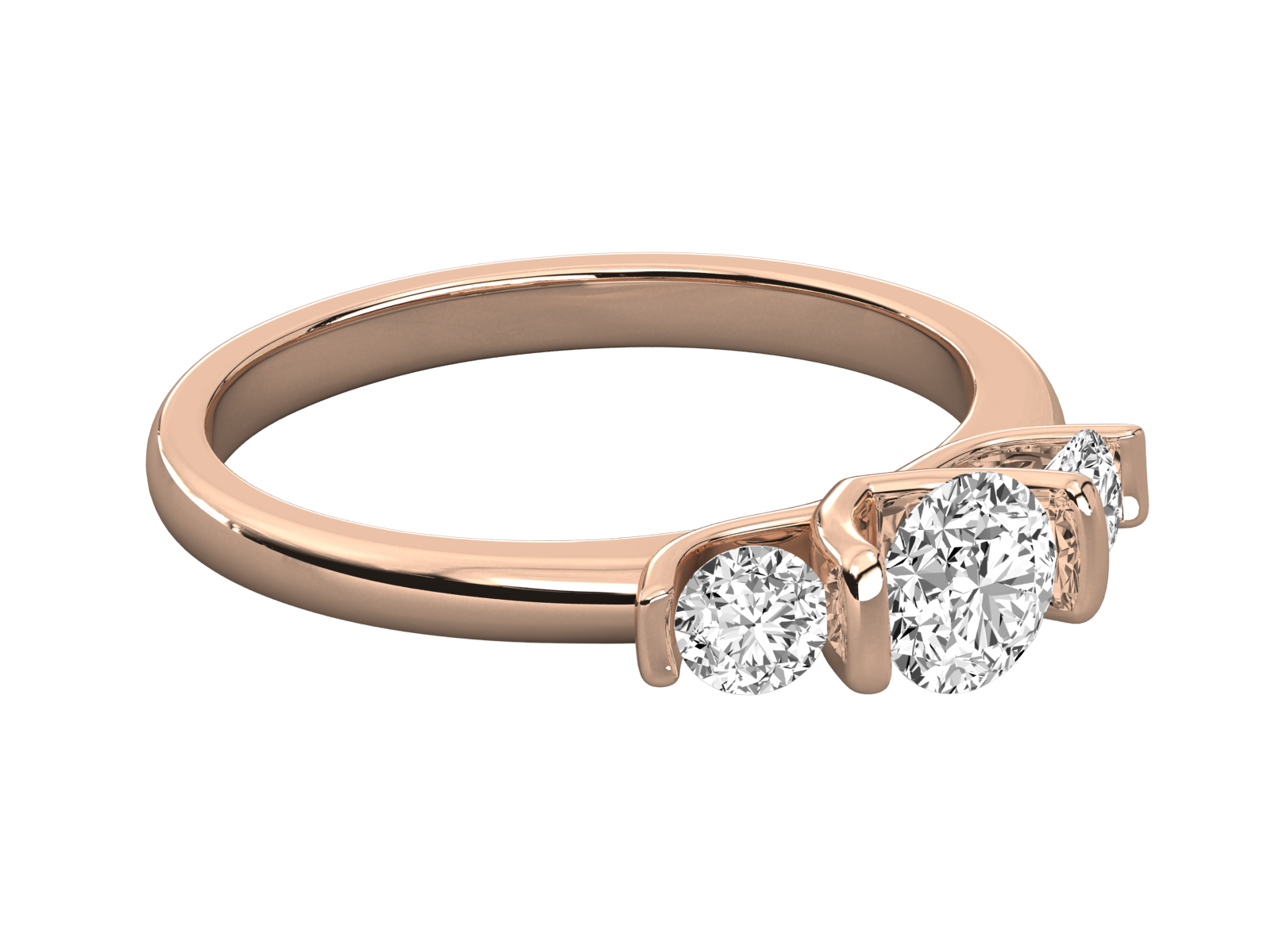 This three-stone diamond ring features round-cut diamonds set in a secure and contemporary bar setting. Crafted in luminous white gold, it symbolizes your past, present, and future. With its clean lines and enduring sparkle, it's perfect for celebrating love with elegance and modern charm.