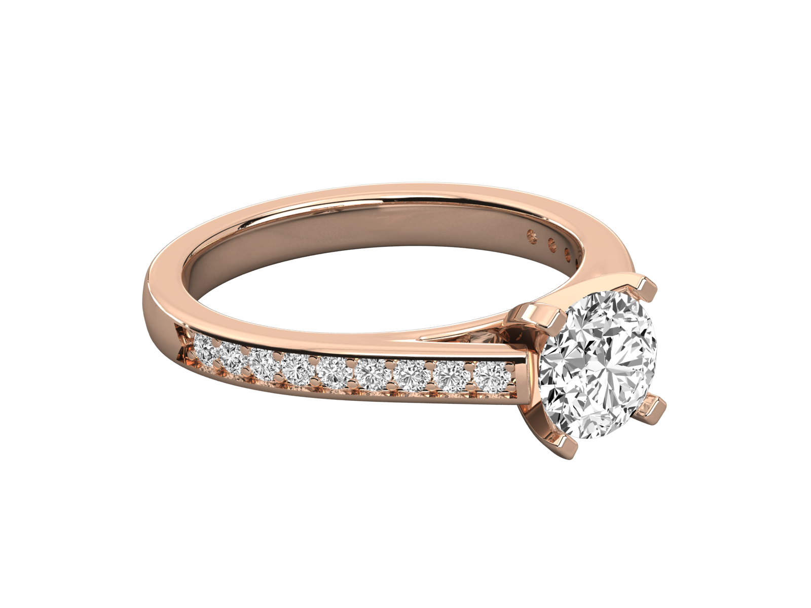 This graceful solitaire ring features a dazzling round-cut diamond set in sleek white gold. Accented by a pavé diamond band, the design combines timeless beauty with modern elegance. Perfect for engagements or special occasions, it radiates sophistication and love, making it a cherished symbol of your forever commitment.