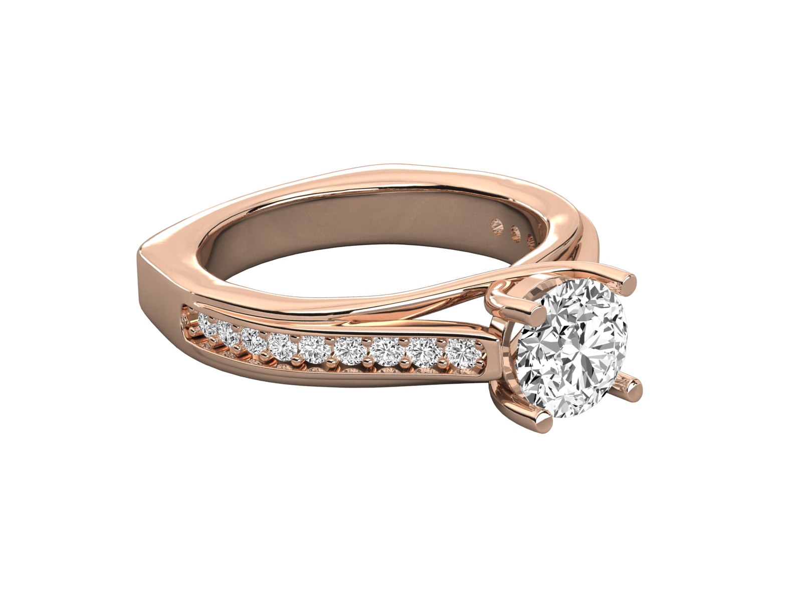 This solid gold engagement ring features a brilliant round-cut moissanite center stone set in a classic prong setting. Sparkling side diamonds line the band for added brilliance. Perfect for engagements, anniversaries, or special occasions, this ring blends romance and luxury in a modern, feminine design.