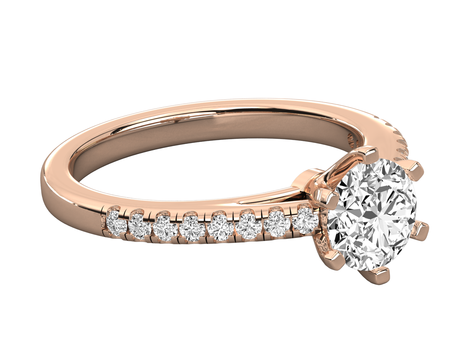 This timeless gold engagement ring features a dazzling round cut moissanite in a six-prong setting, complemented by a delicate diamond pavé band. Crafted for elegance and sparkle, it’s the perfect blend of classic and modern—ideal for proposals, anniversaries, or special occasions. A sophisticated piece she’ll adore forever.