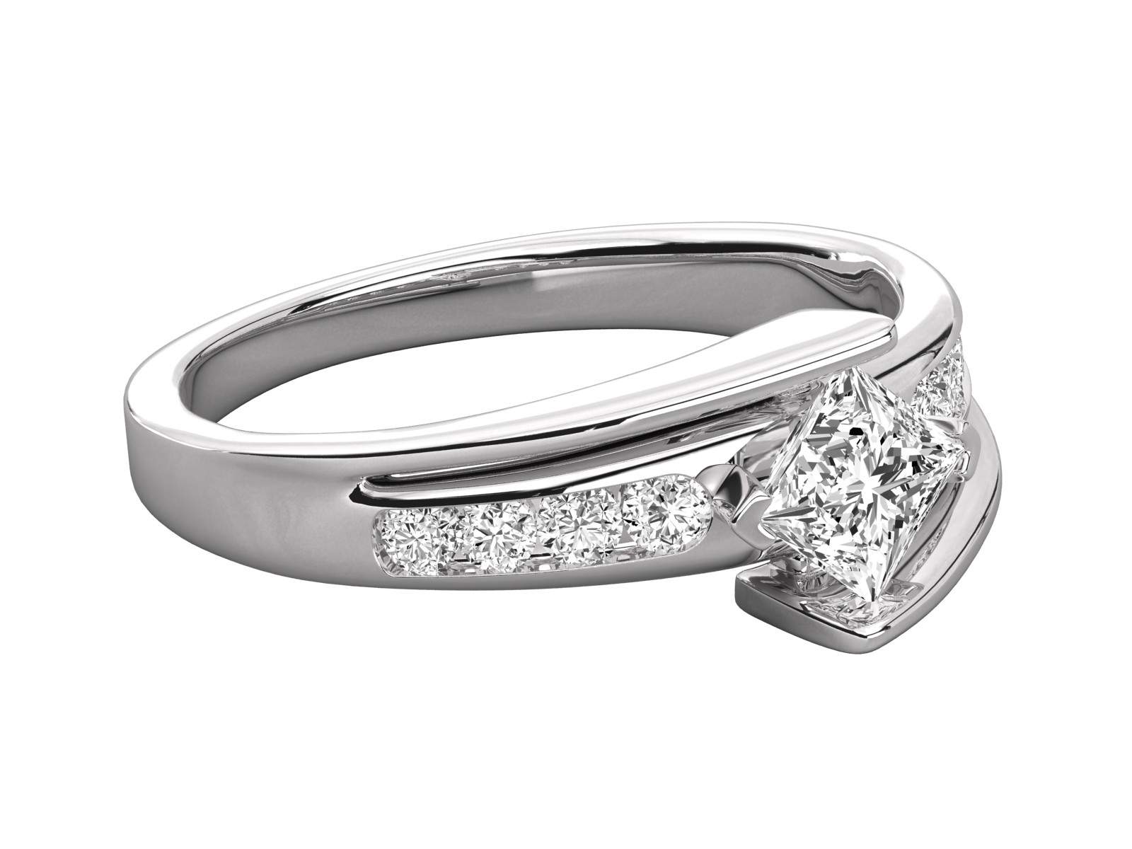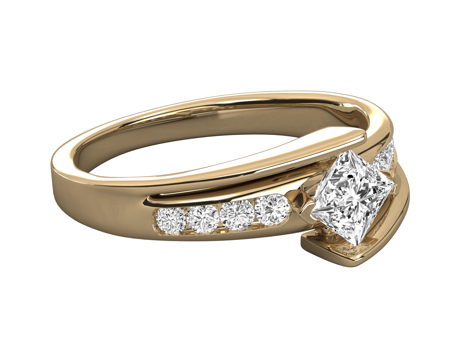 Modern elegance meets timeless sparkle in this princess-cut gold engagement ring. Featuring a unique split shank and shimmering diamond accents, this ring offers a contemporary twist on classic style. Perfect for proposals, anniversaries, or as a promise ring. Handcrafted for brilliance and lasting beauty.