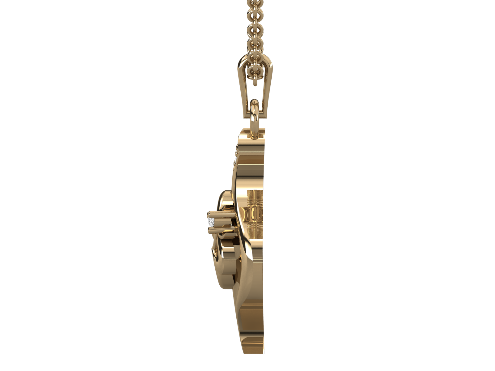 This gold OM pendant features a fluid, artistic design accented by sparkling diamonds. A symbol of peace and spirituality, it’s perfect for yoga lovers or those embracing mindfulness. A timeless gift of serenity and grace, ideal for everyday wear or special spiritual occasions. Chain included.