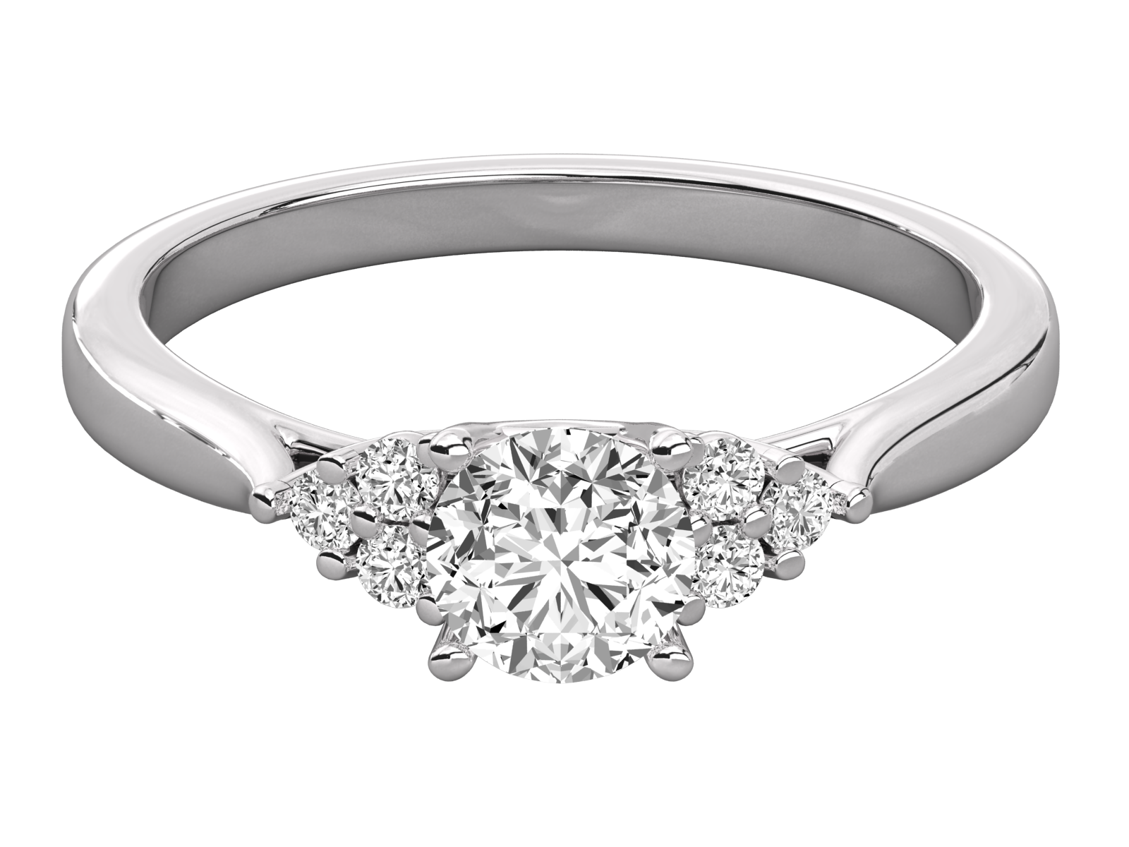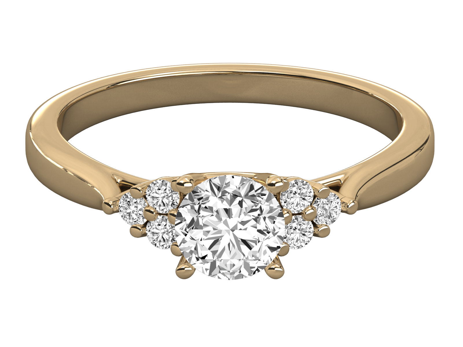 Celebrate timeless love with this elegant gold engagement ring, featuring a brilliant round-cut center diamond flanked by three sparkling diamonds on each side. A perfect blend of classic and modern design, ideal for proposals, anniversaries, or special milestones. Handcrafted for lasting beauty and shine, this piece makes every moment unforgettable.