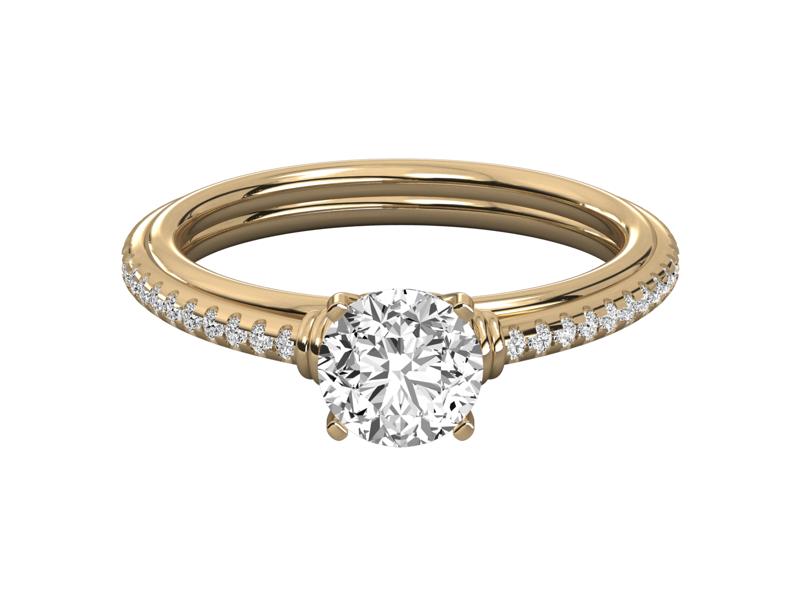 This timeless gold engagement ring showcases a brilliant round-cut diamond set on a sleek pavé band. Designed for elegance and durability, it radiates classic beauty with modern charm. Perfect for engagements, anniversaries, or special milestones – a stunning symbol of love, handcrafted to last a lifetime. Simple, sparkly, unforgettable.