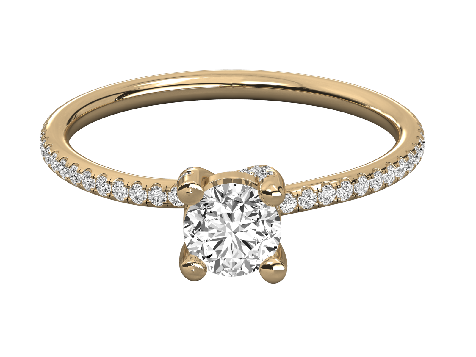 This elegant gold engagement ring features a dazzling round solitaire diamond set in a sleek pavé band. Delicate yet radiant, it blends timeless design with modern charm. A perfect symbol of everlasting love, ideal for proposals, anniversaries, or special occasions. Handcrafted for brilliance, beauty, and forever moments.