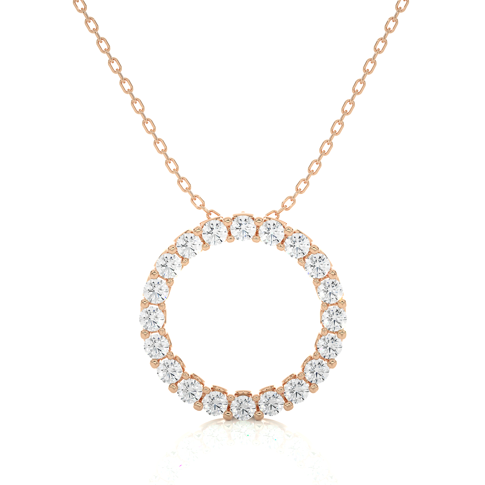 This stunning circle pendant features a seamless loop of brilliant round diamonds set in radiant white gold. A perfect balance of elegance and meaning, it's a timeless piece for daily wear or special occasions. A graceful expression of infinite love, style, and sophistication in one shimmering design.