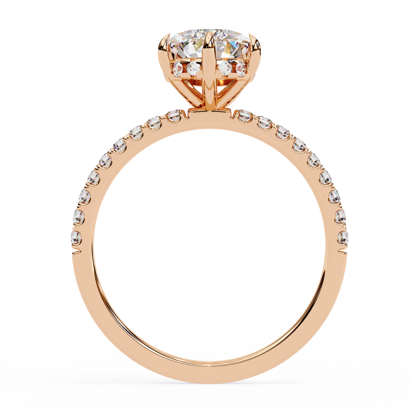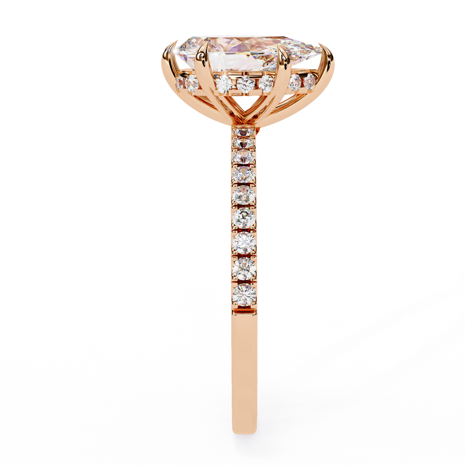 This captivating ring features a pear-shaped diamond, combining the brilliance of a round cut with the elegance of a teardrop silhouette. Set in a pavé diamond band, it sparkles with timeless charm and sophistication. A graceful symbol of love, perfect for engagements or unforgettable moments.