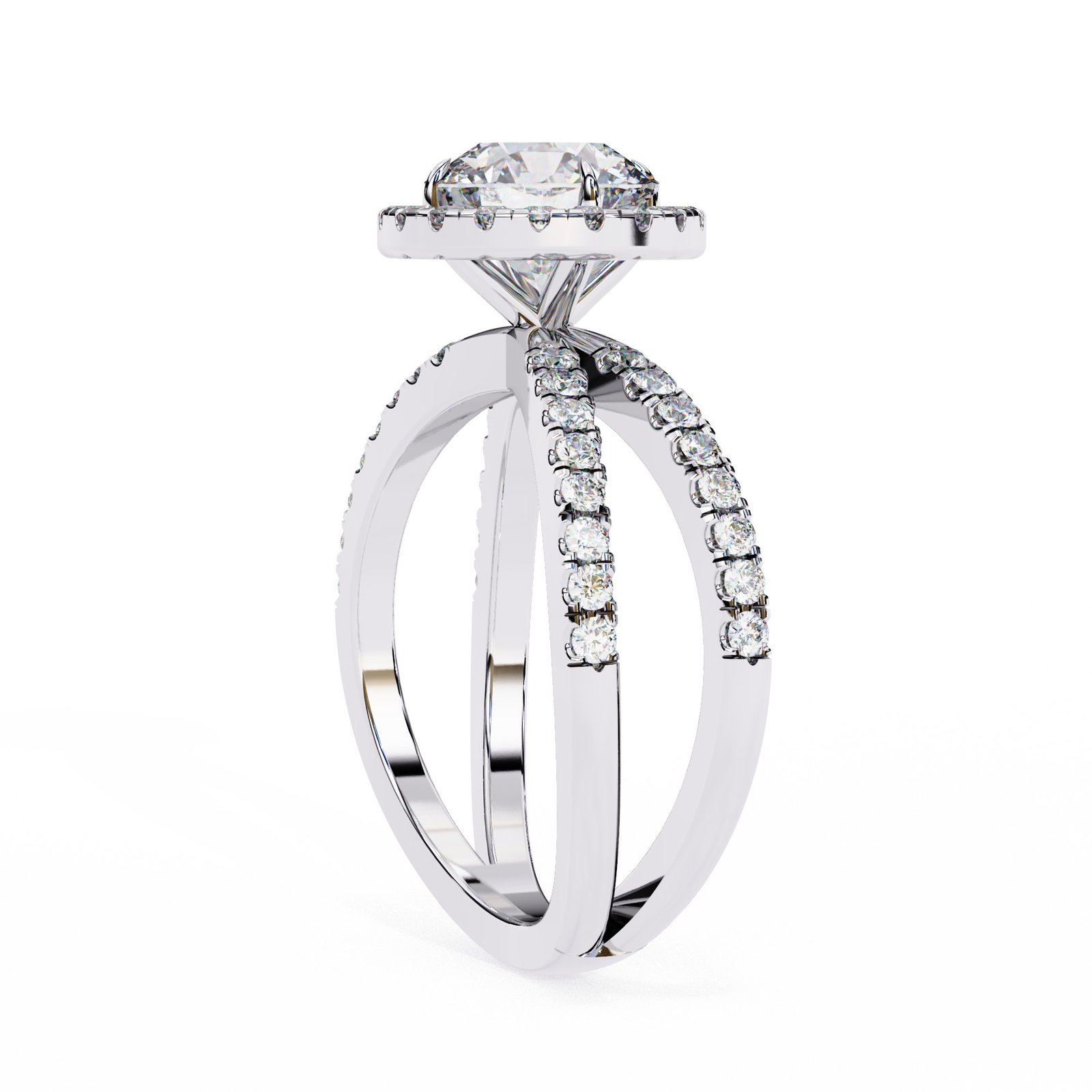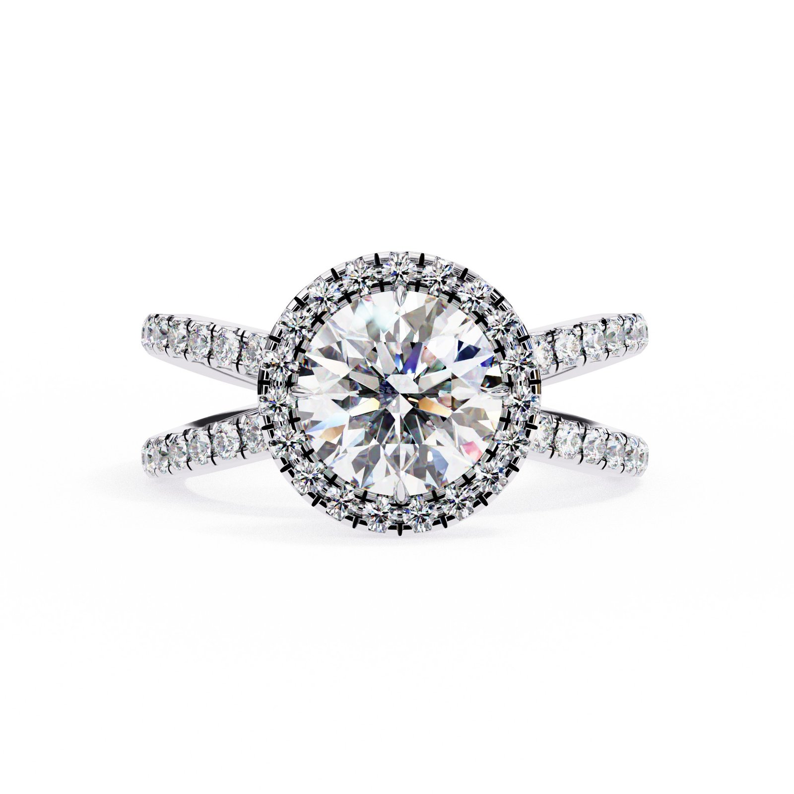 Exude refined elegance with this emerald cut diamond ring, framed by a dazzling halo of round diamonds. The split shank design in lustrous white gold adds a modern, luxurious touch. With its clean lines and timeless brilliance, this ring is a perfect blend of sophistication and radiant sparkle.
