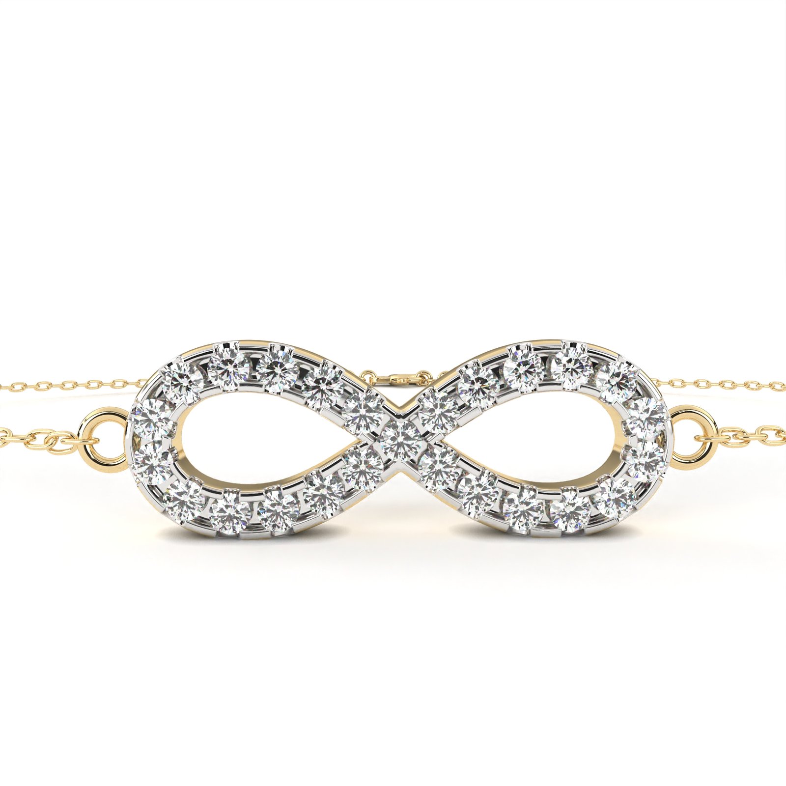 Celebrate endless elegance with this exquisite gold bracelet featuring a dazzling infinity symbol adorned with sparkling diamonds. Its delicate chain complements the radiant centerpiece, symbolizing everlasting love and commitment. Perfect for everyday wear or a meaningful gift, this bracelet adds a touch of timeless sophistication to any look.