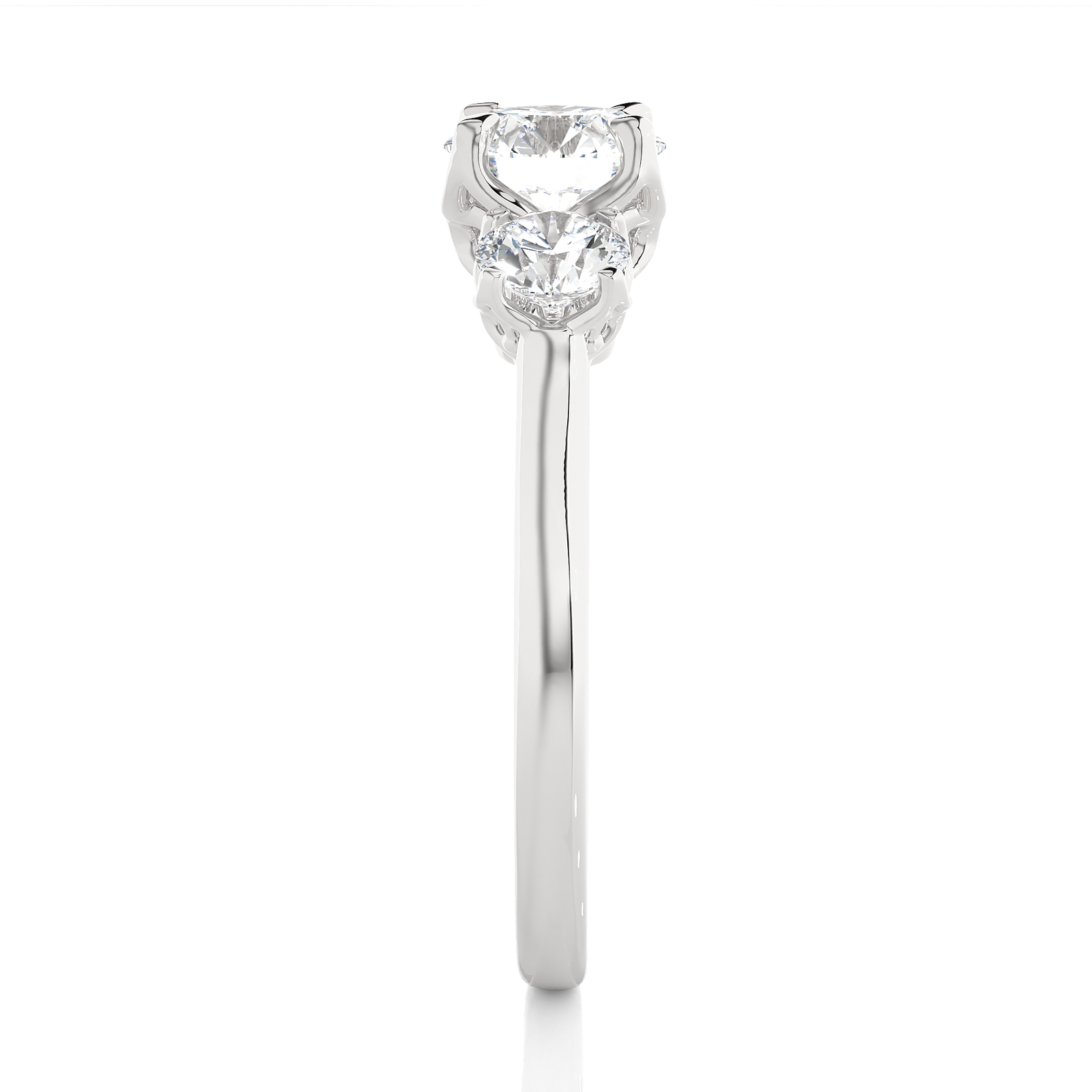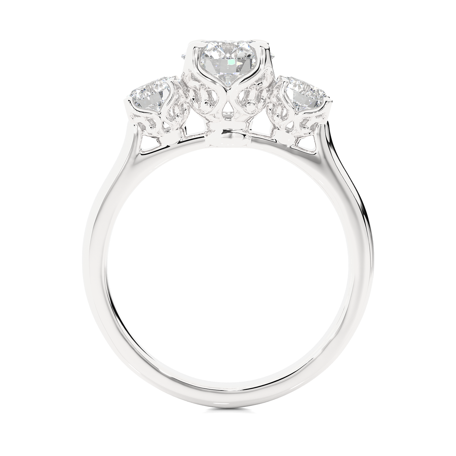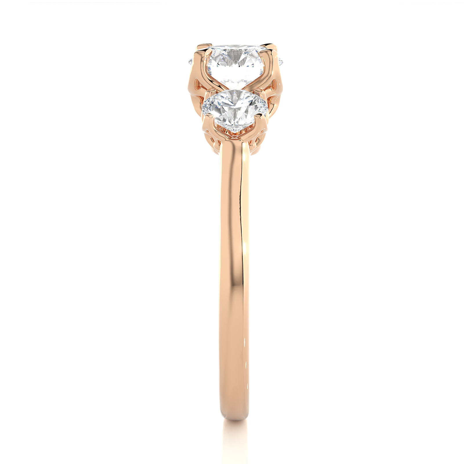 This elegant three-stone diamond ring. Featuring a brilliant round center stone flanked by two sparkling round side diamonds, all set in rich yellow gold, this ring symbolizes your past, present, and future. A sophisticated design that radiates brilliance and enduring charm for every occasion.