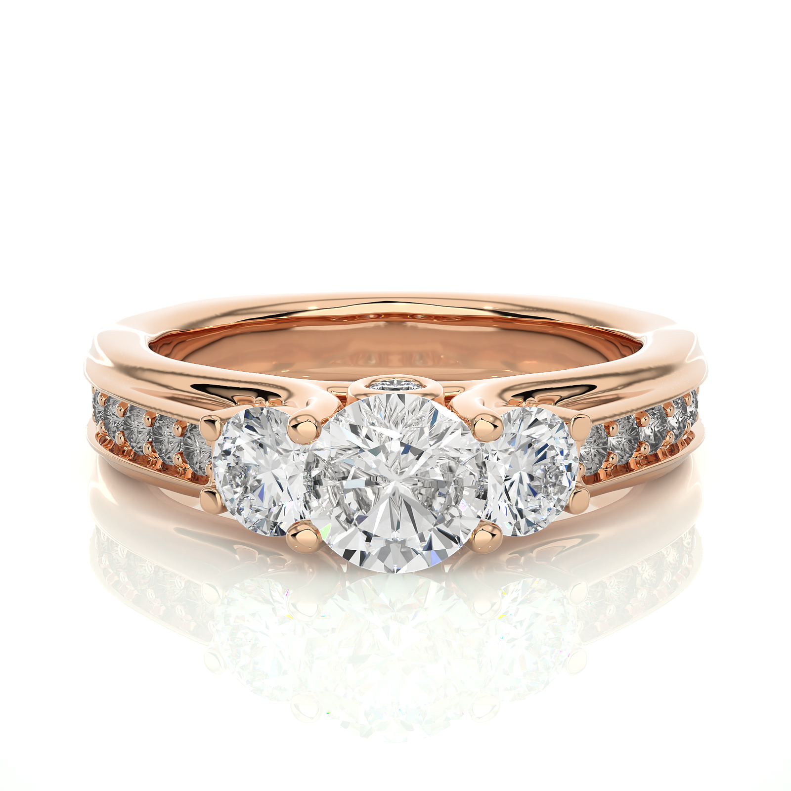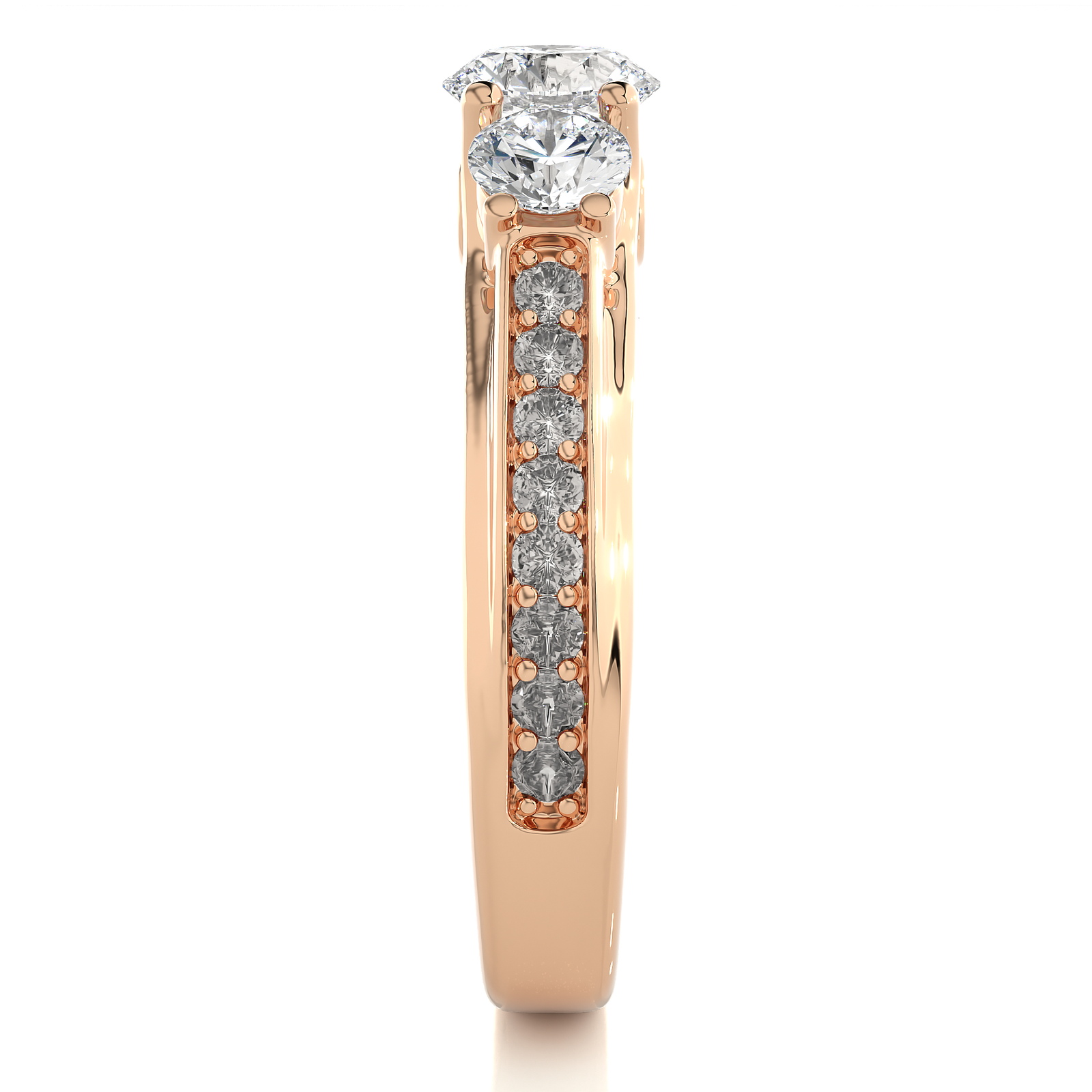 This stunning yellow gold ring features three brilliant diamonds as the centerpiece, complemented by pavé diamonds along the band for extra sparkle. Designed for timeless elegance, it perfectly symbolizes love, commitment, and unity. An ideal choice for engagements or special celebrations with enduring beauty and sophistication.