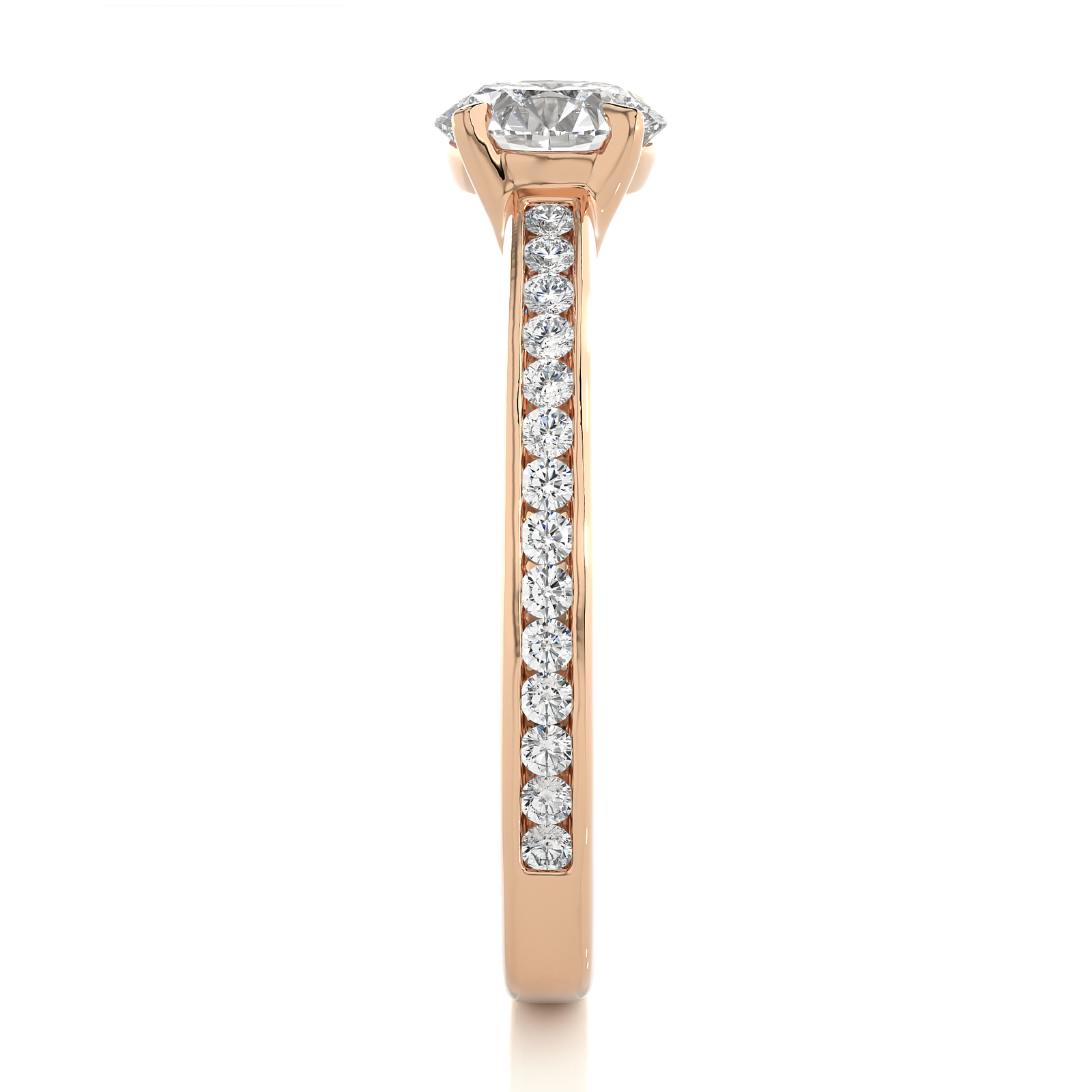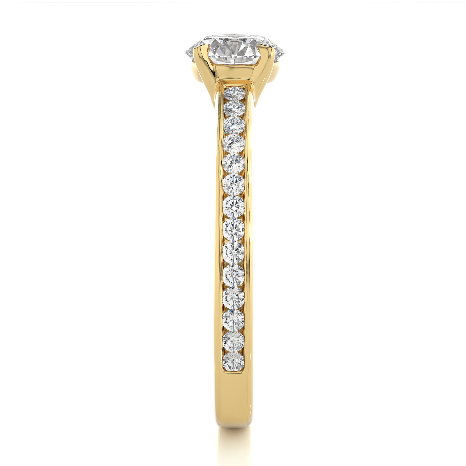 this stunning ring features a brilliant round-cut center diamond, elevated by a sleek channel-set band adorned with sparkling round diamonds. Crafted in polished white gold, its graceful design and enduring elegance make it a perfect symbol of lasting love and commitment. Ideal for a romantic proposal.