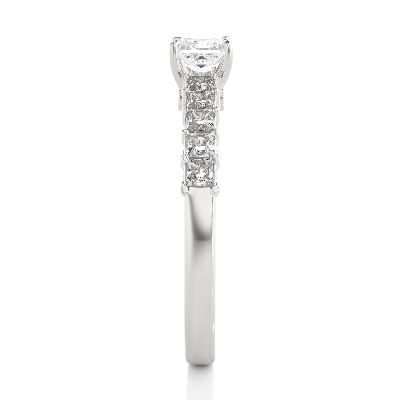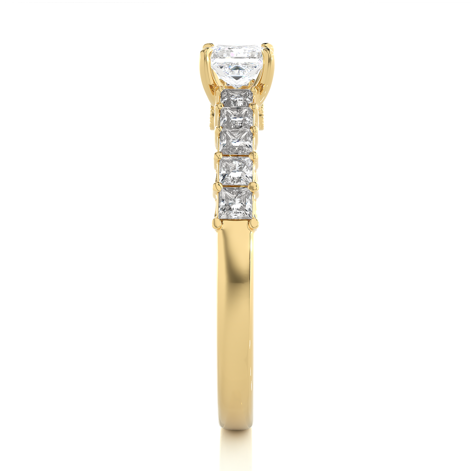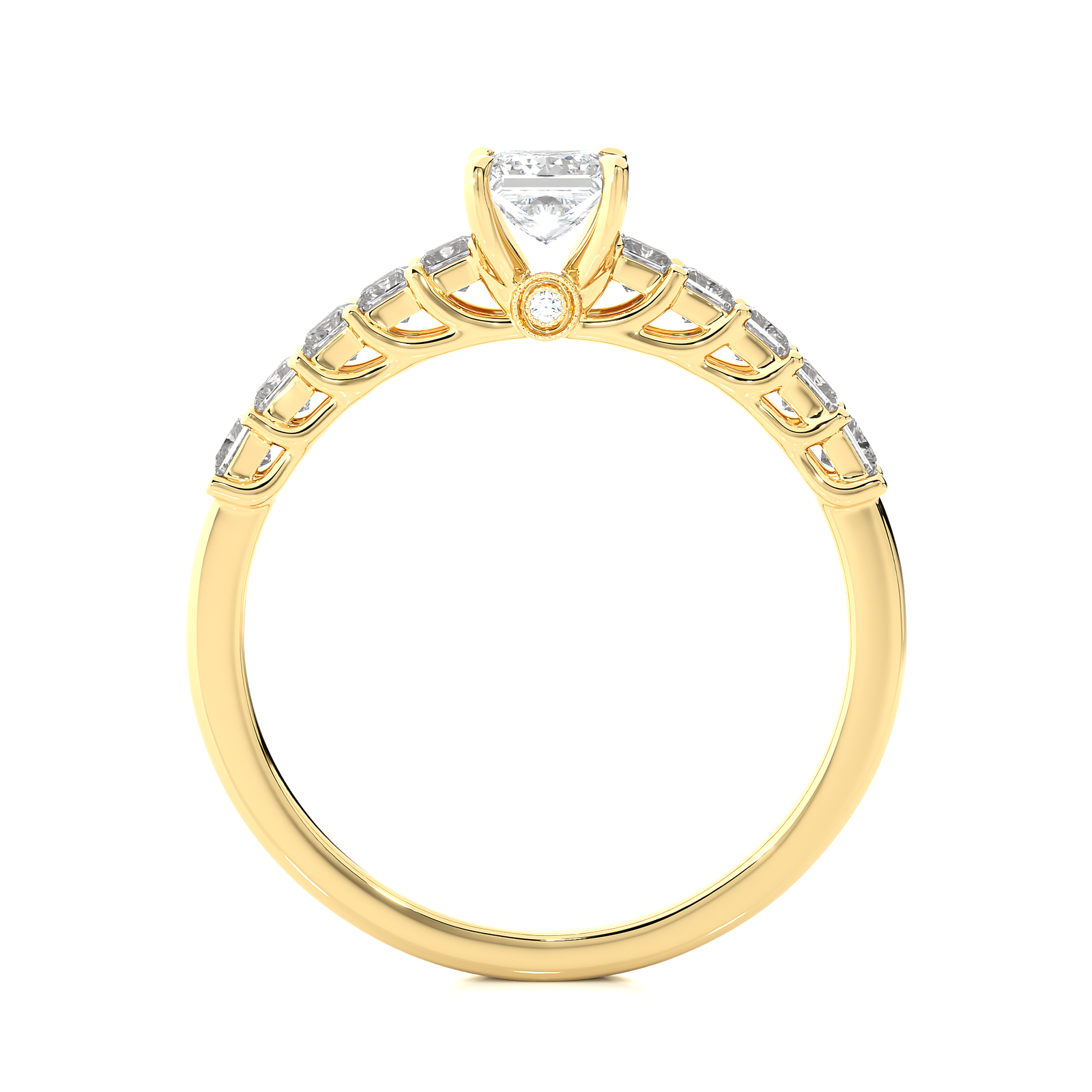 This exquisite solid gold engagement ring features a sparkling center stone elevated by a graceful prong setting. The band is adorned with shimmering side diamonds, complemented by intricate openwork detailing for added brilliance. A perfect blend of elegance and sophistication, making it an unforgettable symbol of love and commitment.