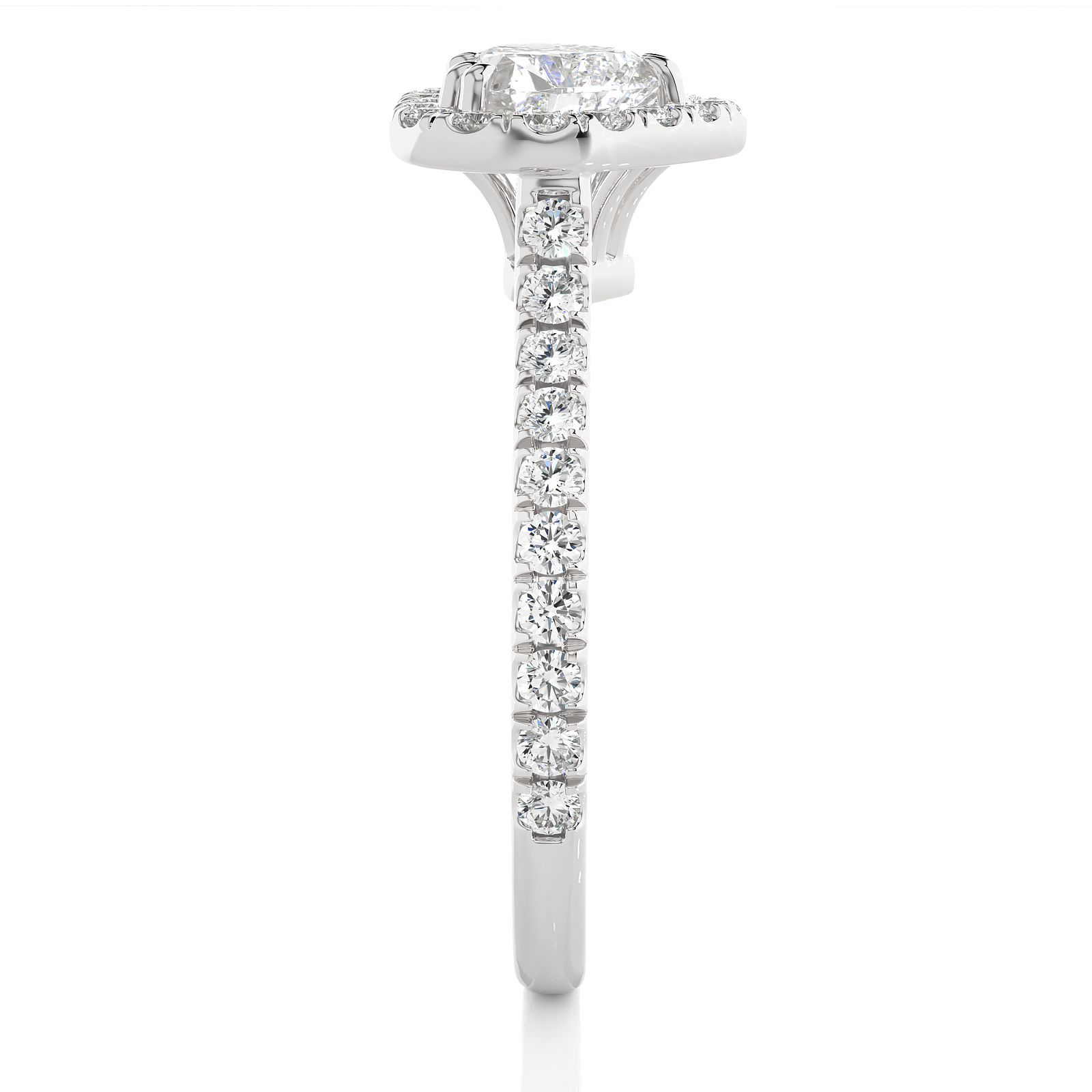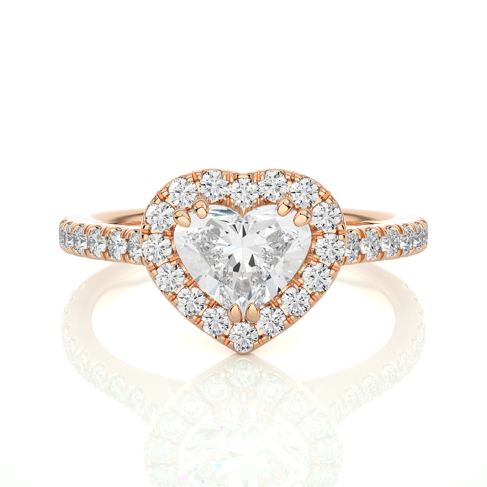Celebrate eternal love with this exquisite heart-shaped diamond ring, embraced by a brilliant halo of round-cut diamonds. the shimmering band adds extra sparkle and charm. A timeless symbol of romance and devotion, this ring makes the perfect engagement or anniversary gift for the one you adore.